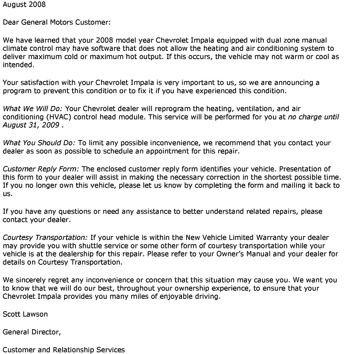 Campaign - A/C Control Module Reprogramming