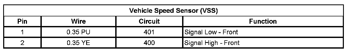 Vehicle Speed Sensor: Diagrams