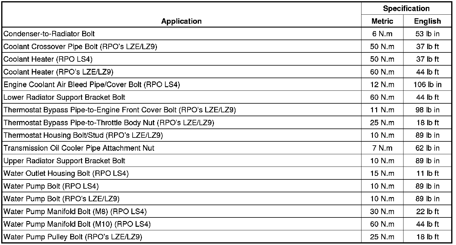 Fastener Tightening Specifications