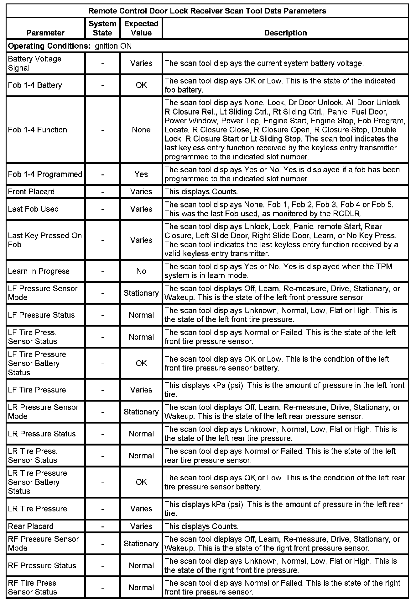 Door Lock Receiver Scan Tool Information