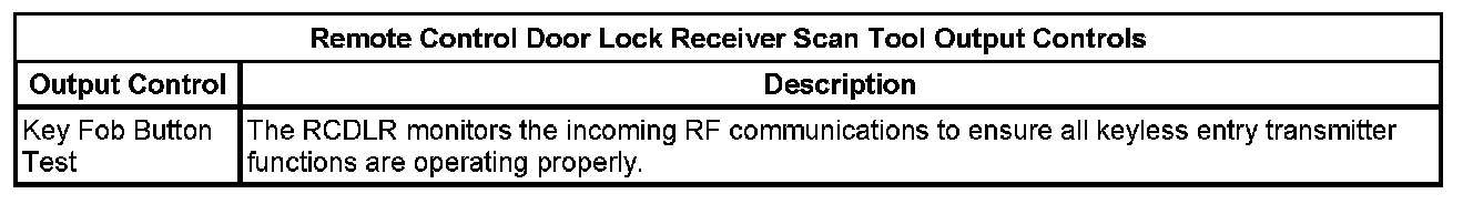 Remote Control Door Lock Receiver Scan Tool Information