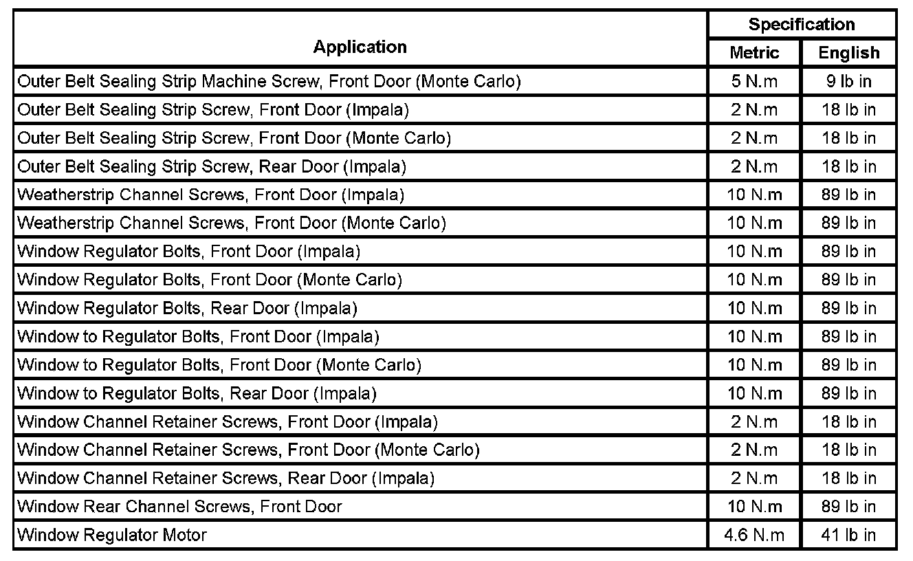 Fastener Tightening Specifications