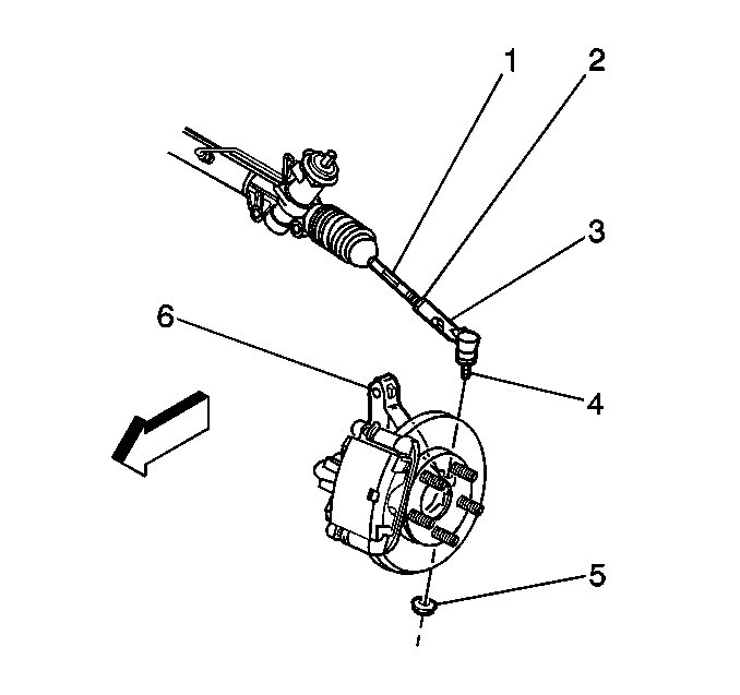 1.Disconnect the outer tie rods (3) from the steering knuckles (6). Refer to Steering Linkage Outer Tie Rod Replacement .