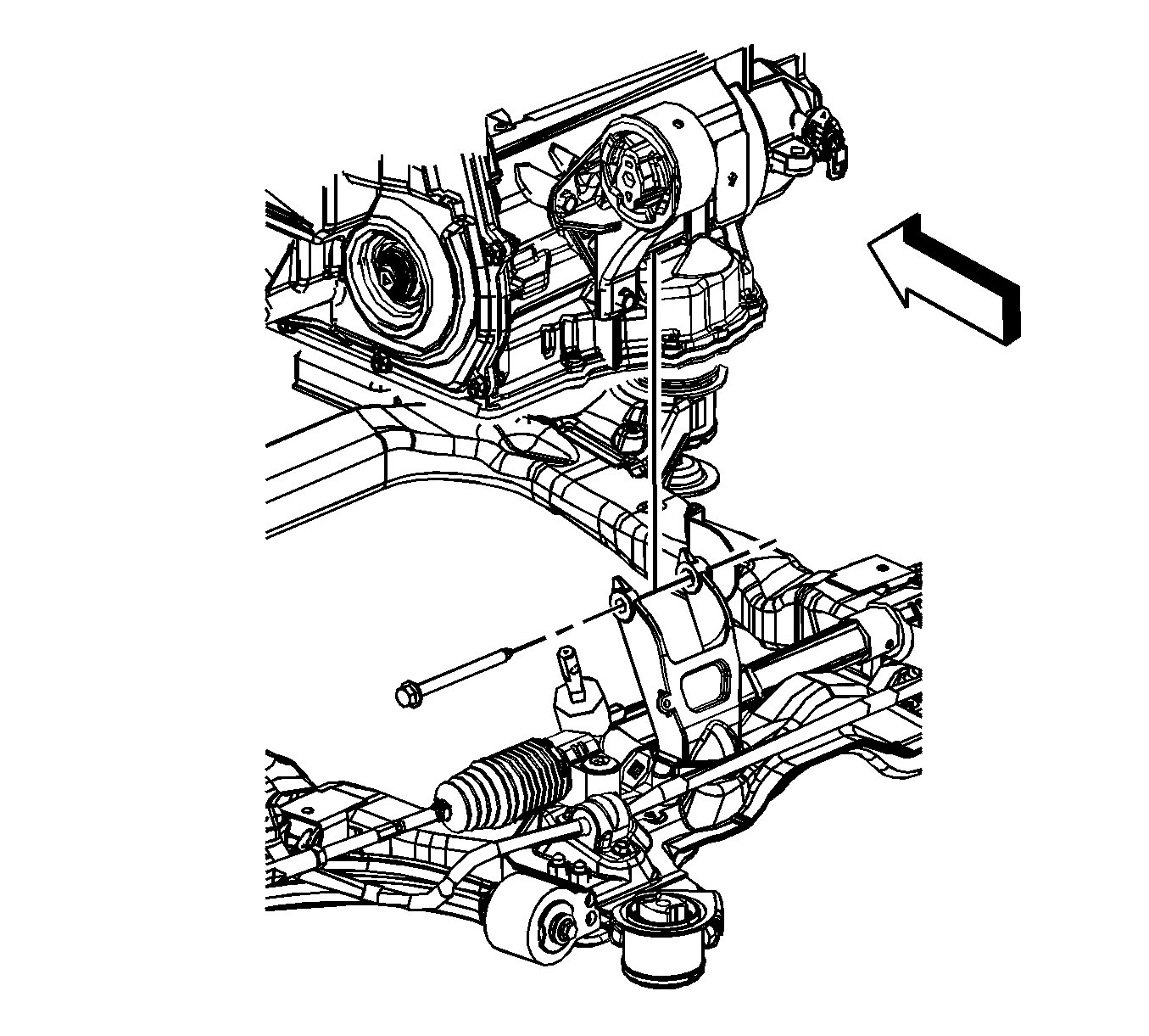 1.Install the front transmission mount through bolt. Hand tighten only.