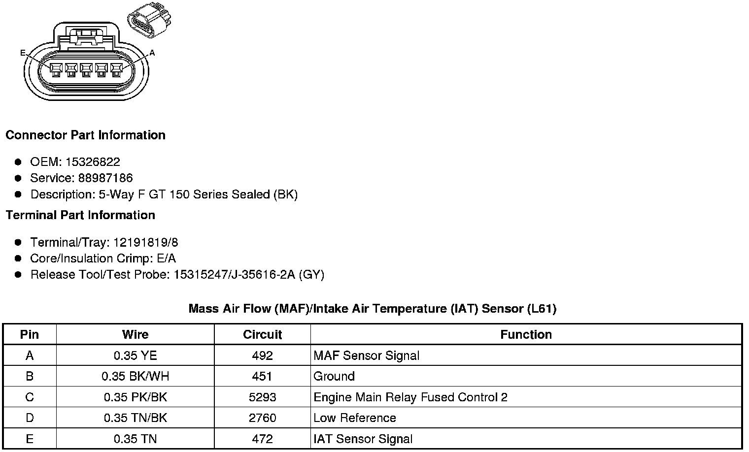 Mass Air Flow (MAF)/Intake Air Temperature (IAT) Sensor (L61)