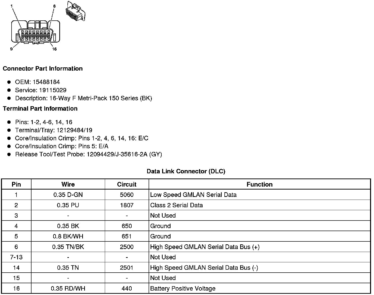 Data Link Connector: Diagrams