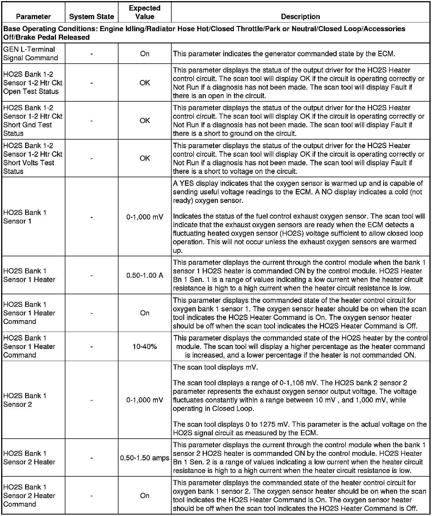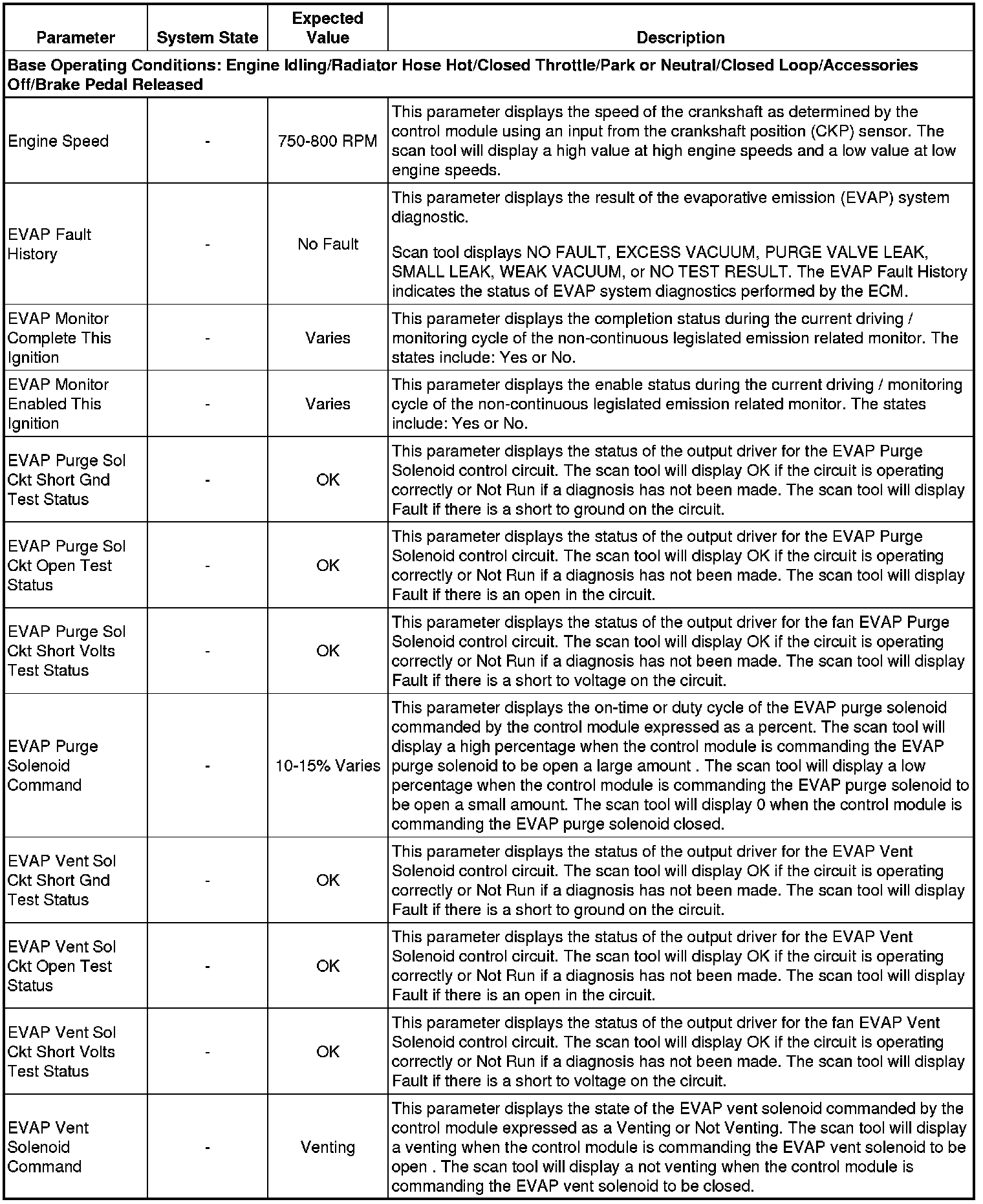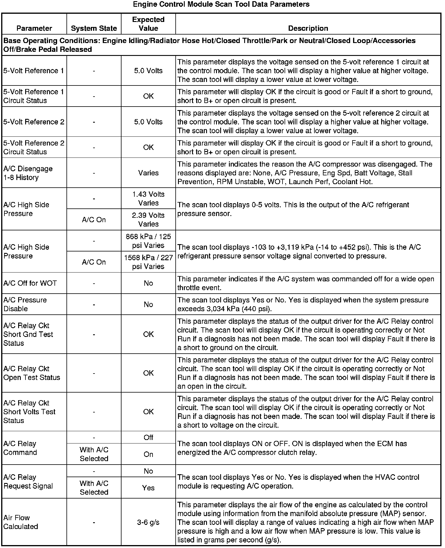 The scan tool values from a properly running engine may be used for comparison with the engine you are diagnosing. The Engine Scan Tool Data List represents values that would be seen on a normally running engine.