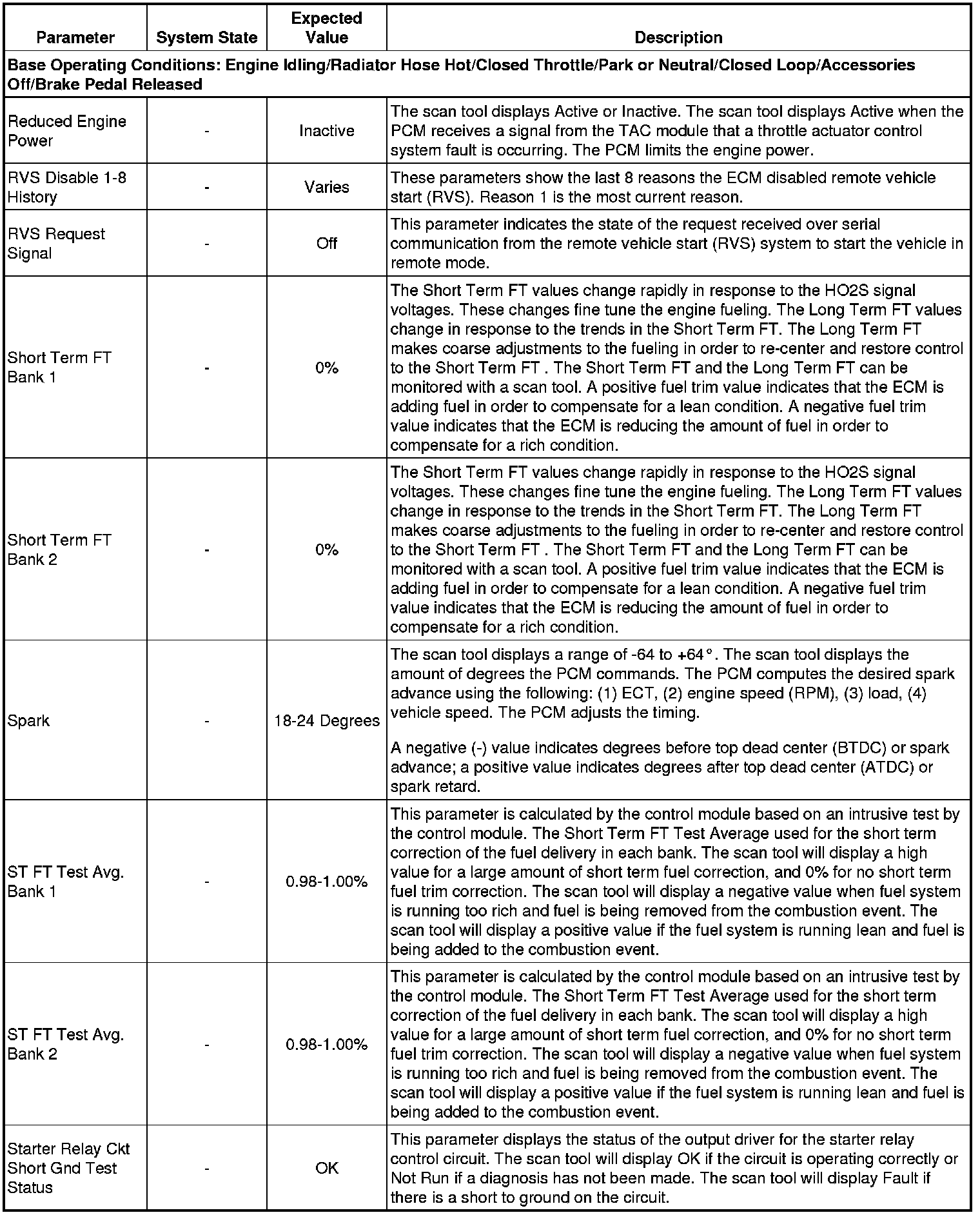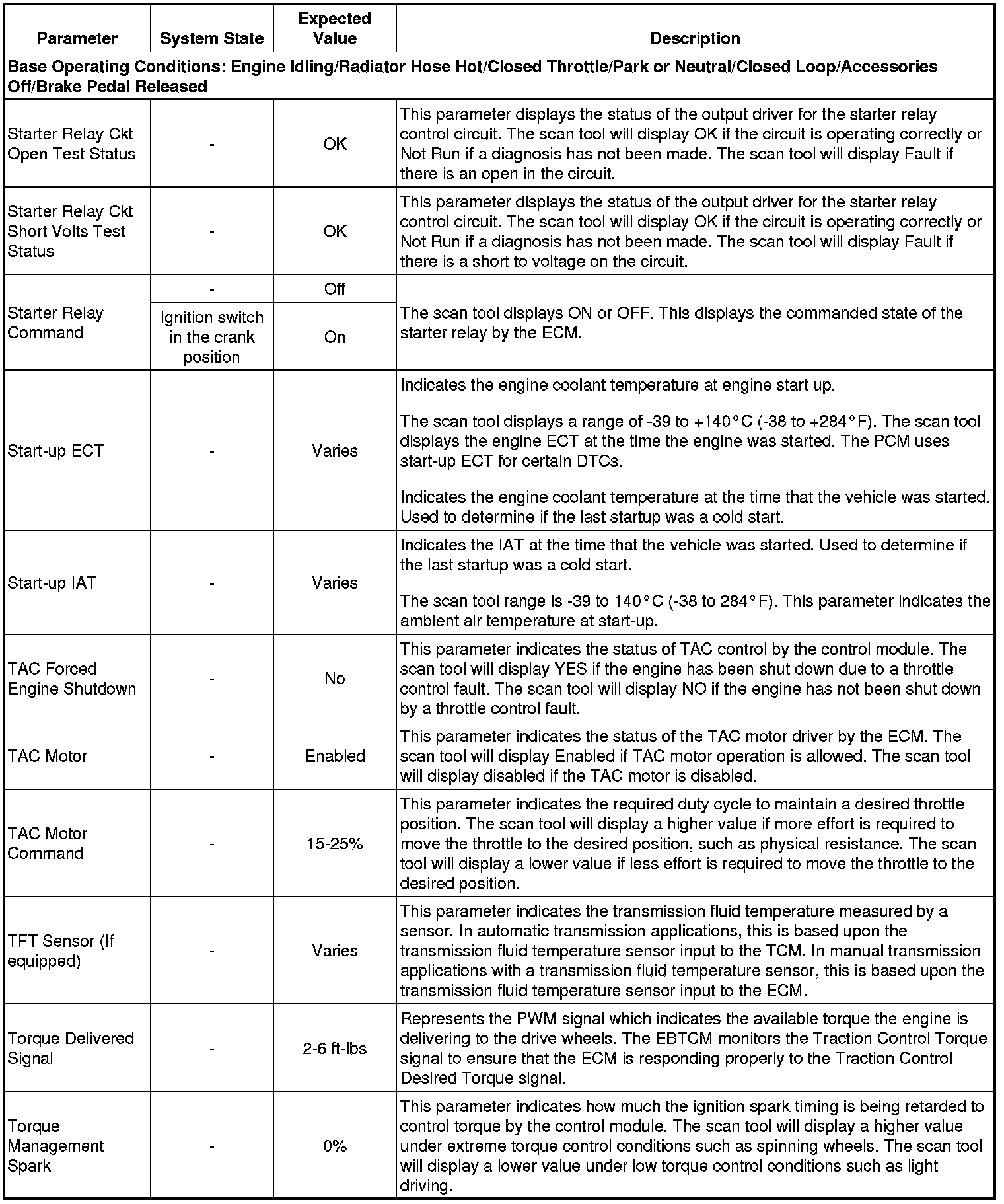 Only the parameters listed below are referenced in this service manual for use in diagnosis. If all values are within the typical range described below, refer to Symptoms - Engine Controls (- Symptoms - Engine Controls) for diagnosis.