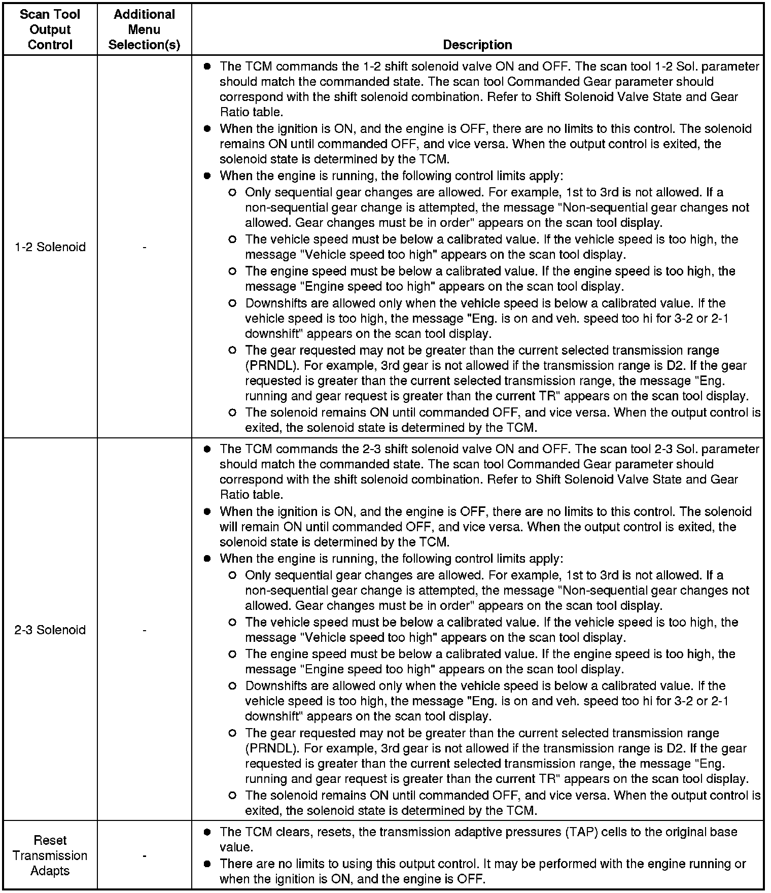 Scan Tool Output Controls