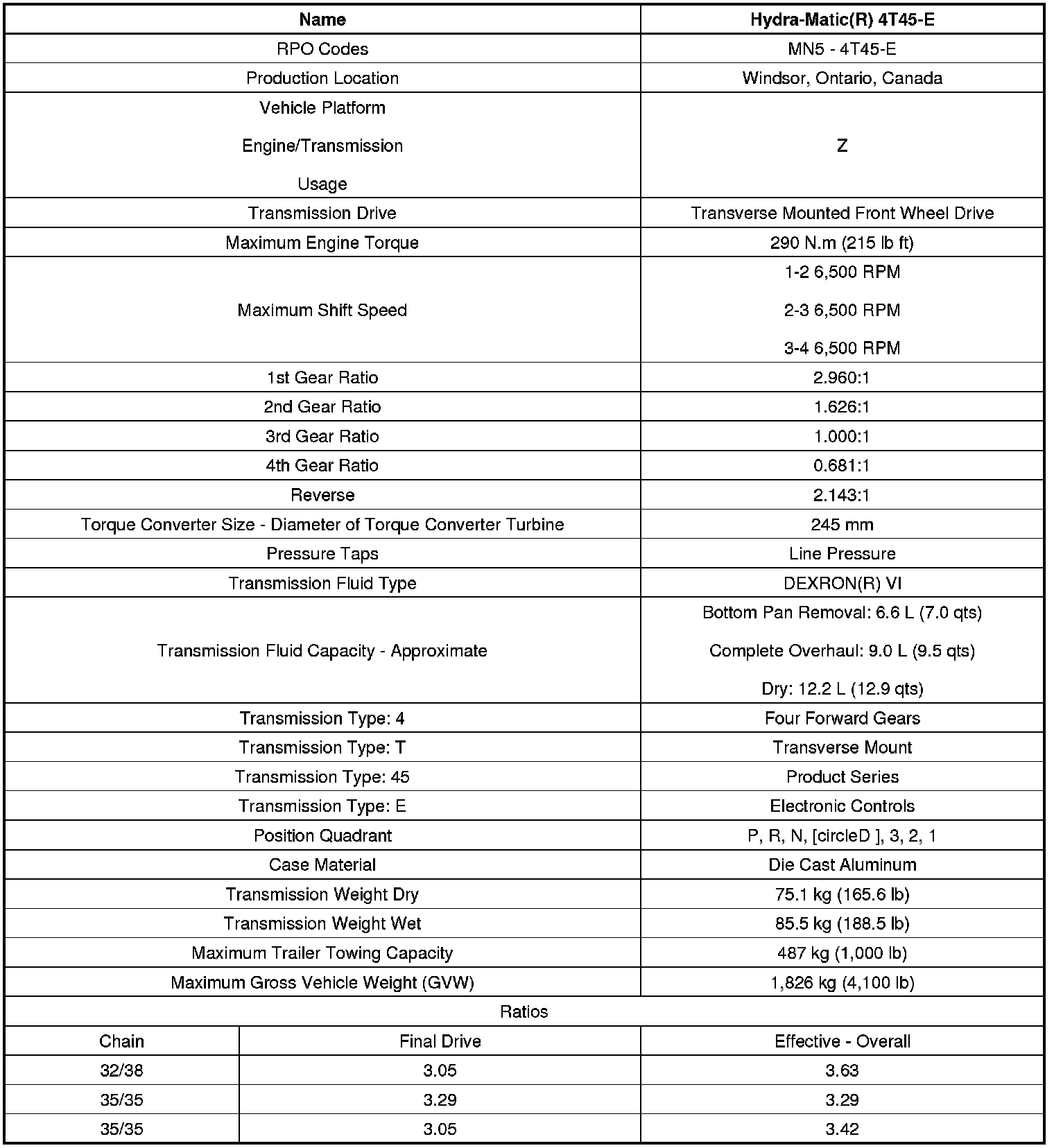 Transmission General Specifications