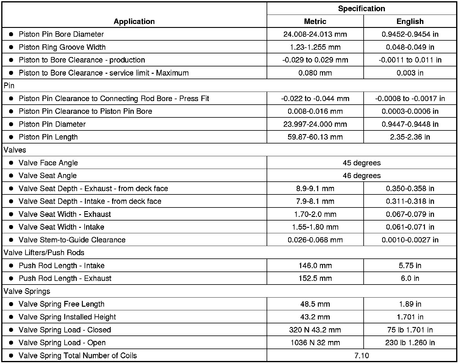 Engine Mechanical Specifications