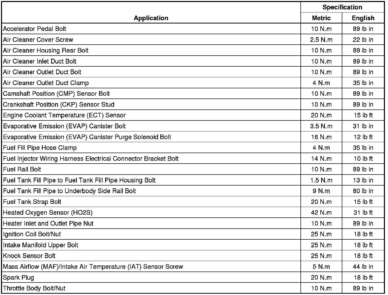Fastener Tightening Specifications