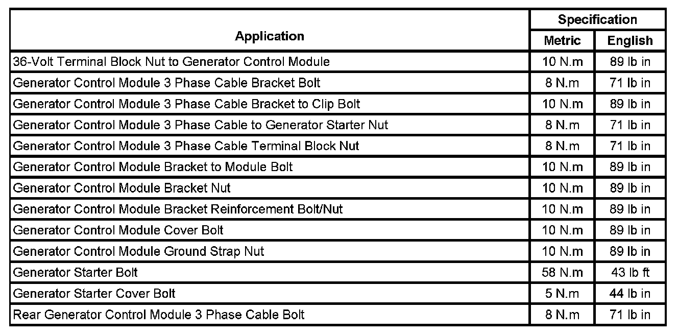 Fastener Tightening Specifications