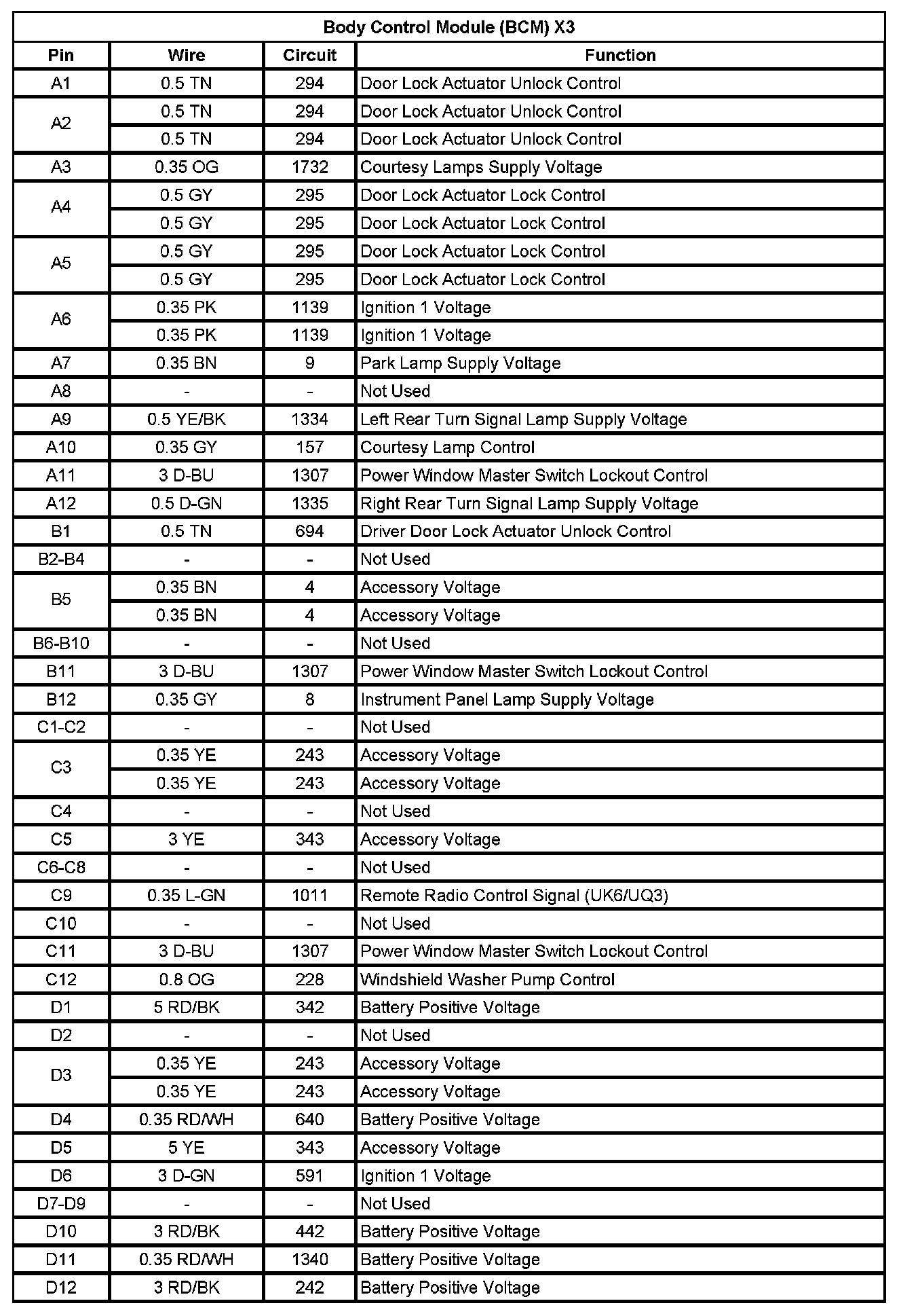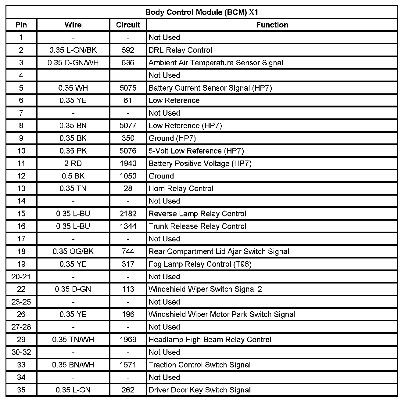 Body Control Module (BCM) X1 (Pin 1 To 35):