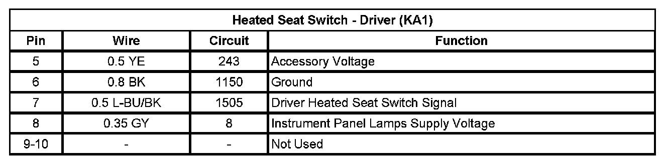Heated Seat Switch - Driver (KA1)
