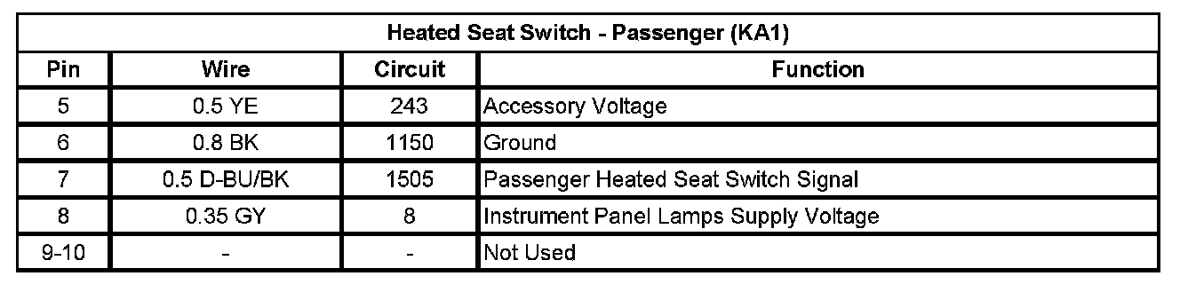 Heated Seat Switch - Passenger (KA1)
