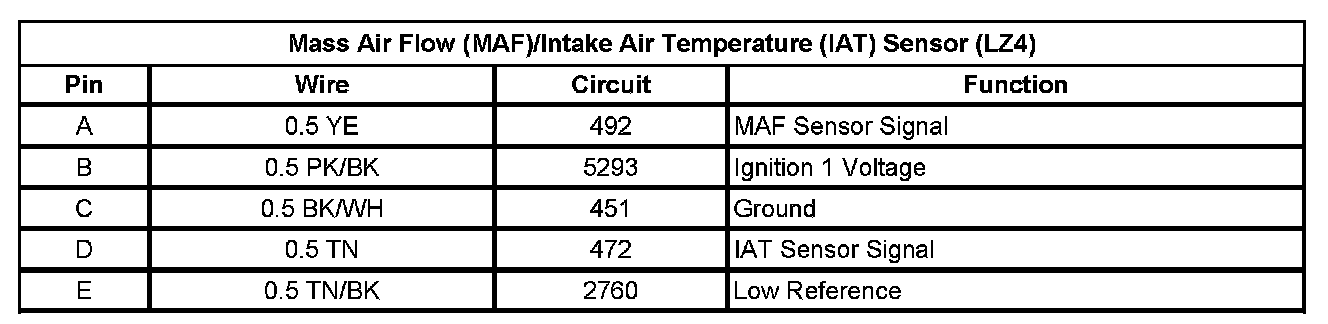 Mass Air Flow (MAF)/Intake Air Temperature (IAT) Sensor (LZ4)