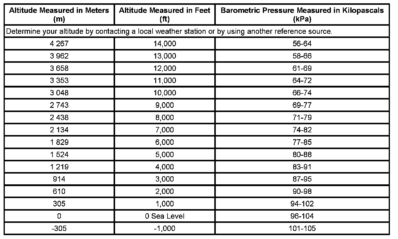 Altitude Versus Barometric Pressure