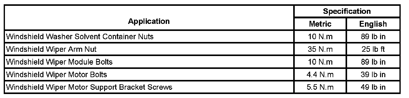 Wiper and Washer Systems: Specifications