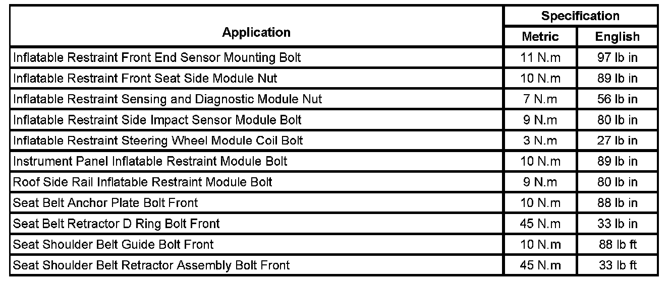 Fastener Tightening Specifications