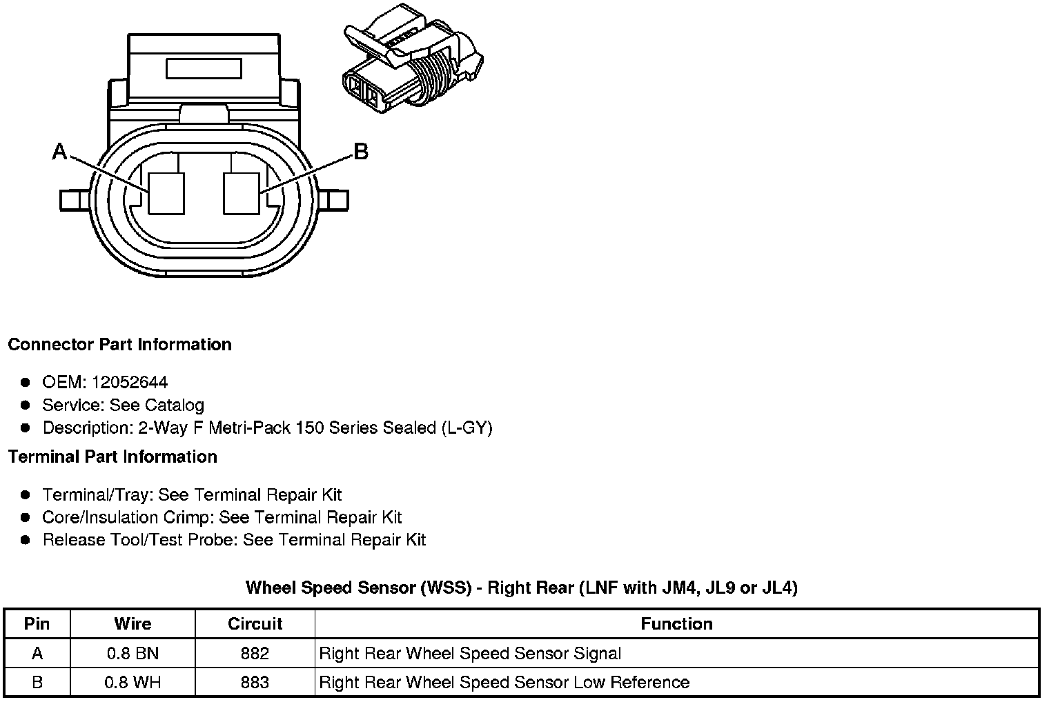 Wheel Speed Sensor (WSS) - Right Rear (LNF with JM4, JL9 or JL4)