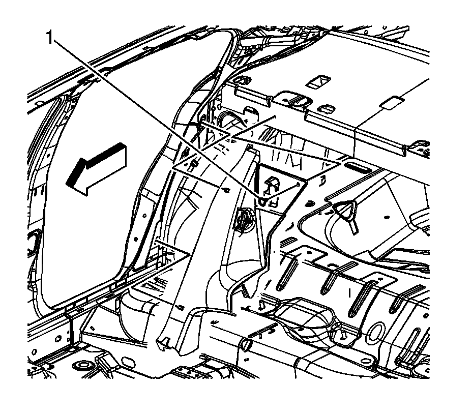 7. Install the lower lock pillar garnish molding fastener (1).