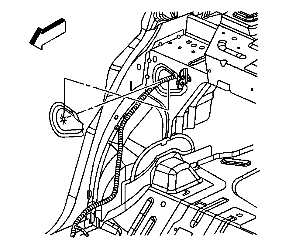 4. Remove the rosebud fastener which retains the latch cable to the rear compartment shelf.