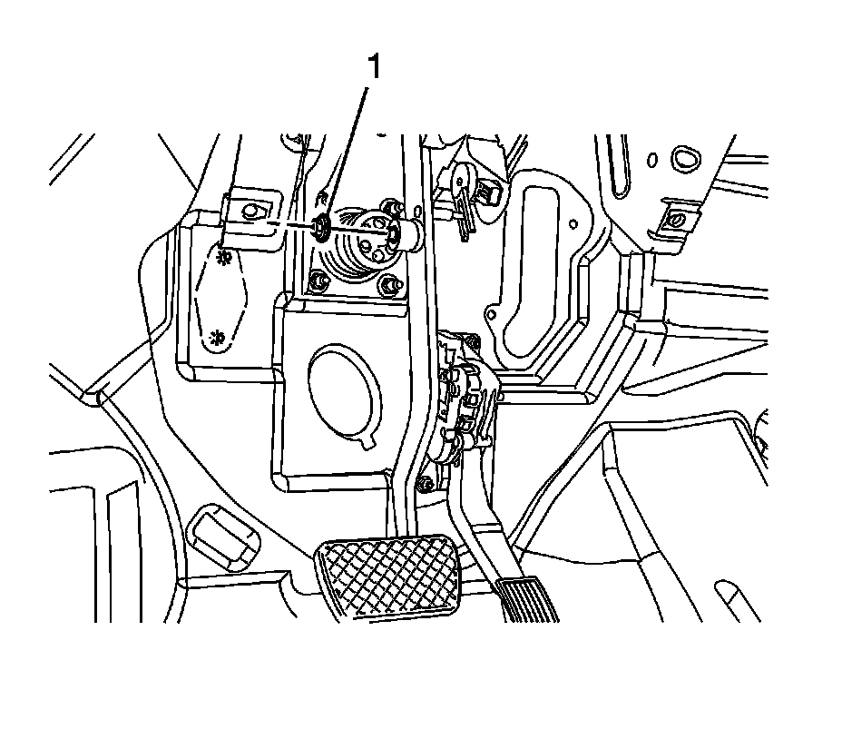 5. Remove the brake pedal pushrod nut (1).