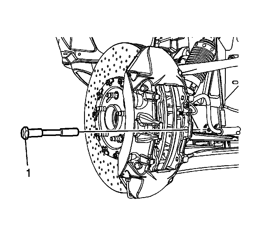 1. Install the brake caliper guide pin (1) and the bolt and tighten the bolt to 30 Nm (22 lb ft).