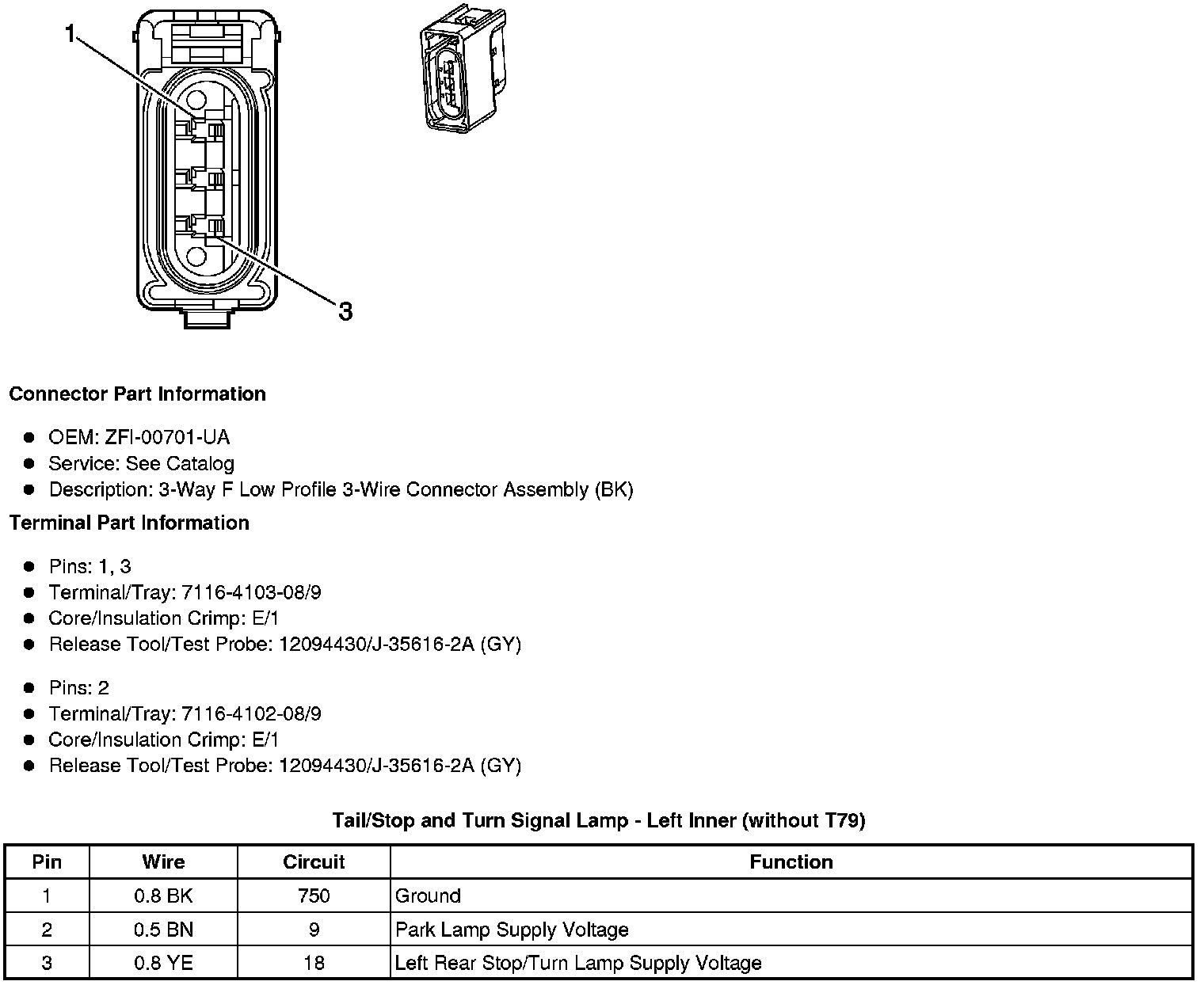 Tail/Stop and Turn Signal Lamp - Left Outer (without T79)