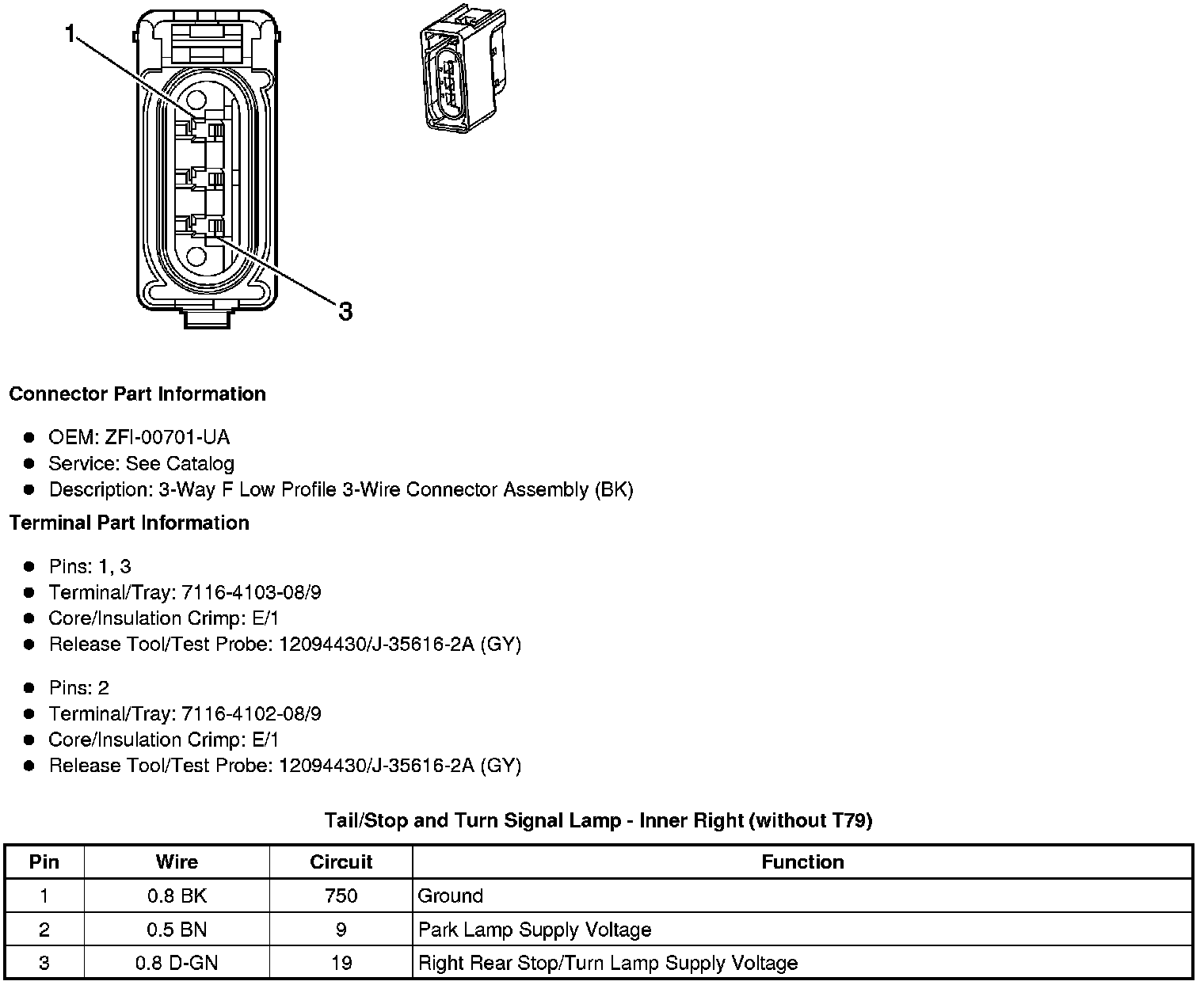 Tail/Stop and Turn Signal Lamp - Inner Right (without T79)