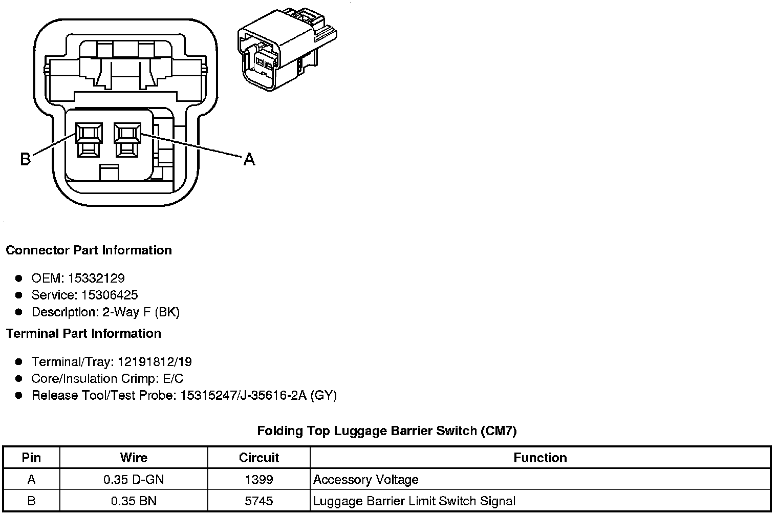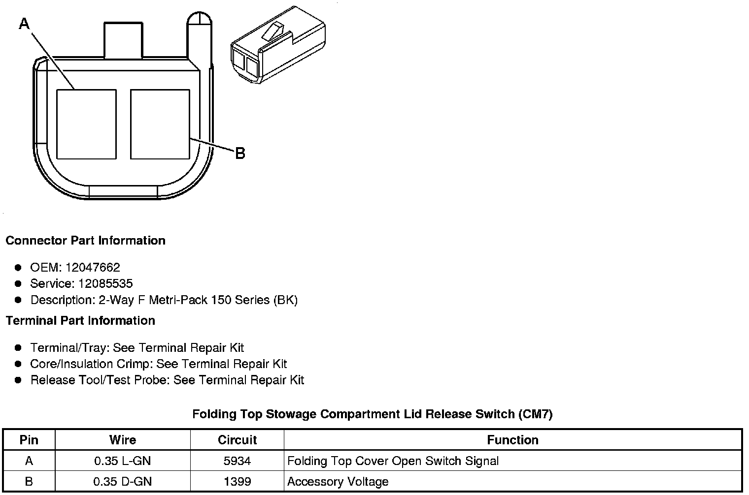 Folding Top Stowage Compartment Lid Release Switch (CM7)