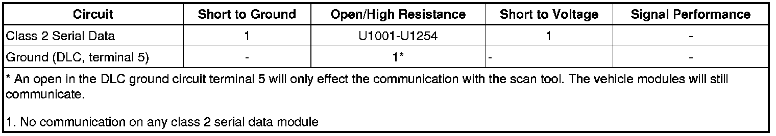 * An open in the class 2 serial data circuit between the DLC and the BCM will only effect the scan tool communication and will not affect module to module communication.