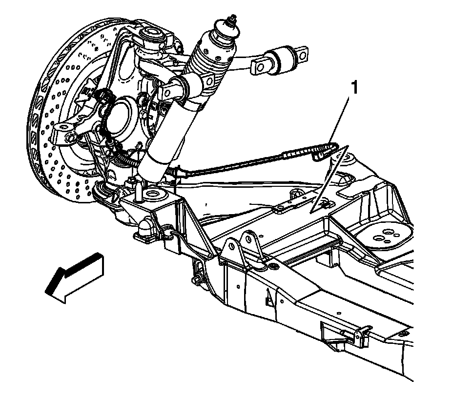 19.Disconnect the wheel speed sensor wiring harness (1) from the crossmember.
