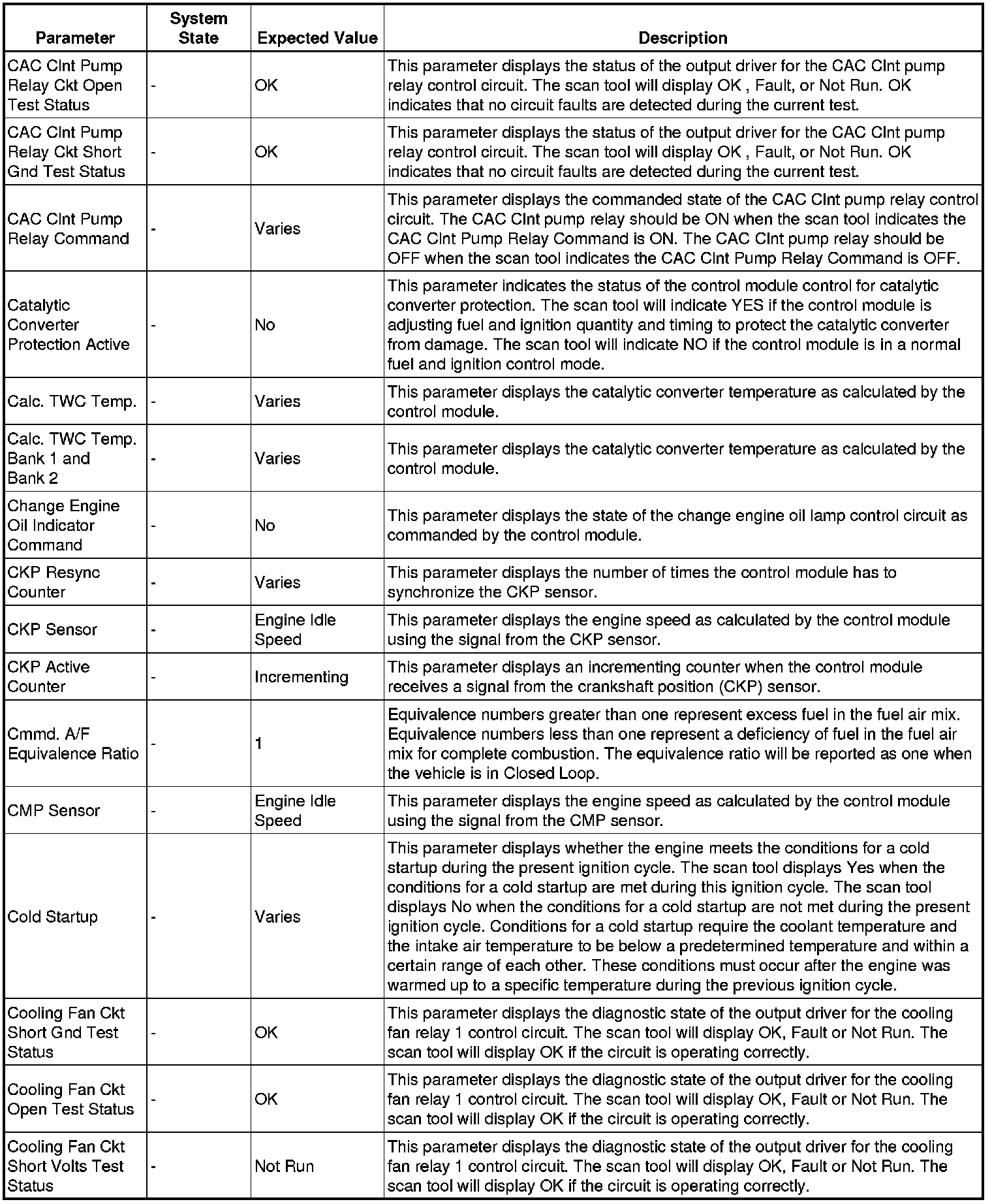 The Engine Control Module Scan Tool Data List contains all engine-related parameters that are available on the scan tool. The list is arranged in alphabetical order. A given parameter may appear in any one of the data lists, and in some cases may appear more than once, or in more than one data list in order to group certain related parameters together.