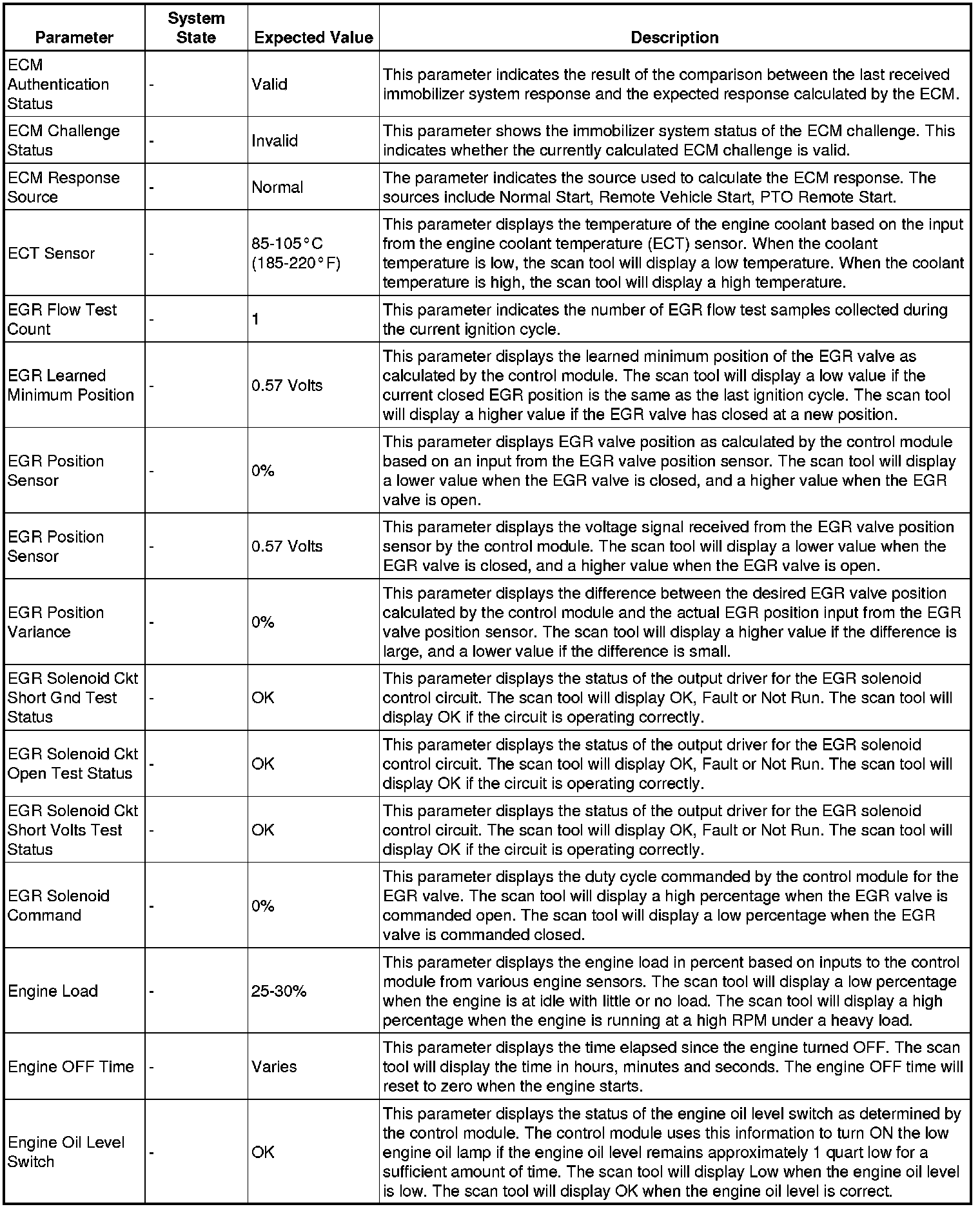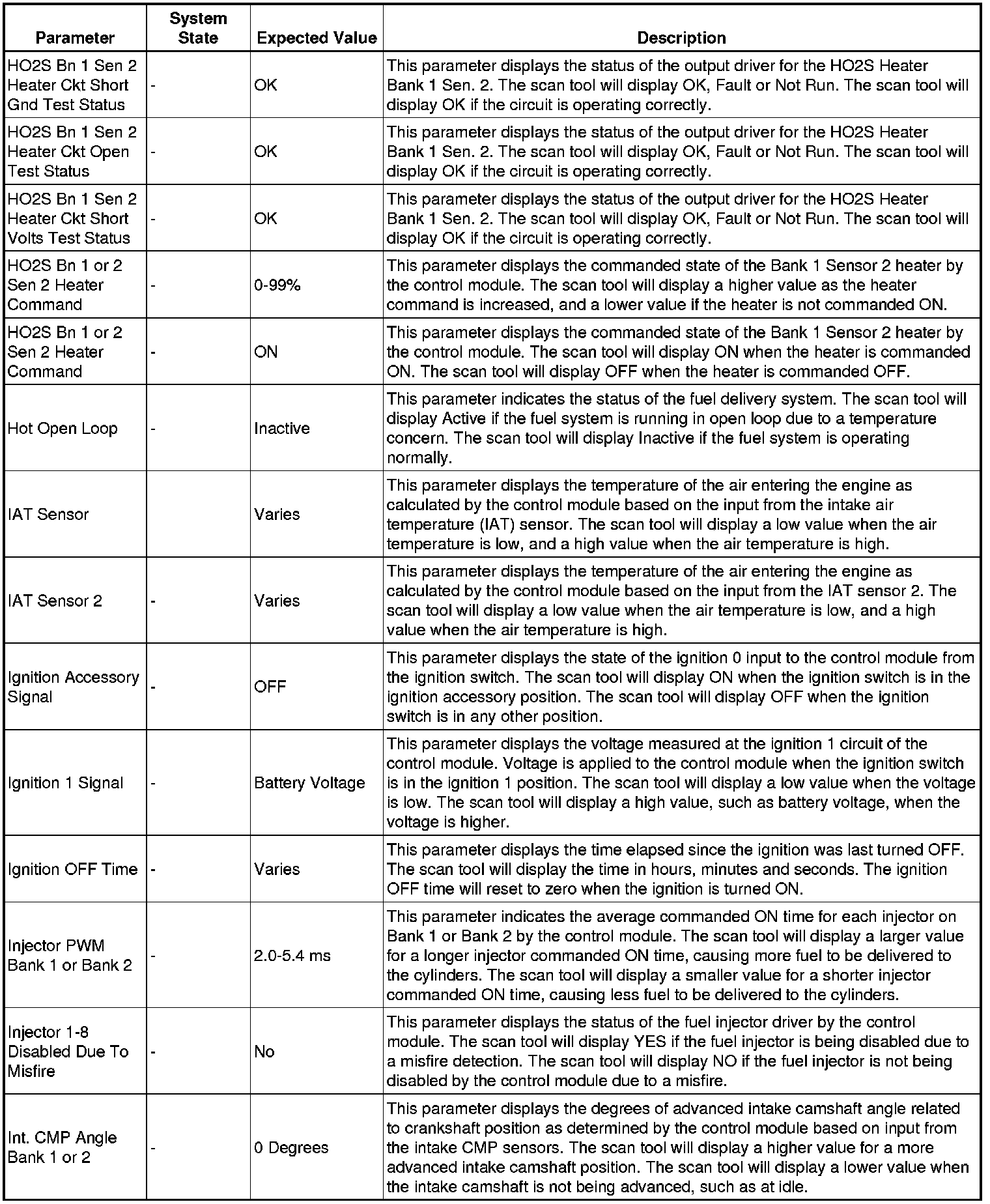 The scan tool values from a properly running engine may be used for comparison with the engine you are diagnosing. The engine scan tool data list represents values that would be seen on a normally running engine.
