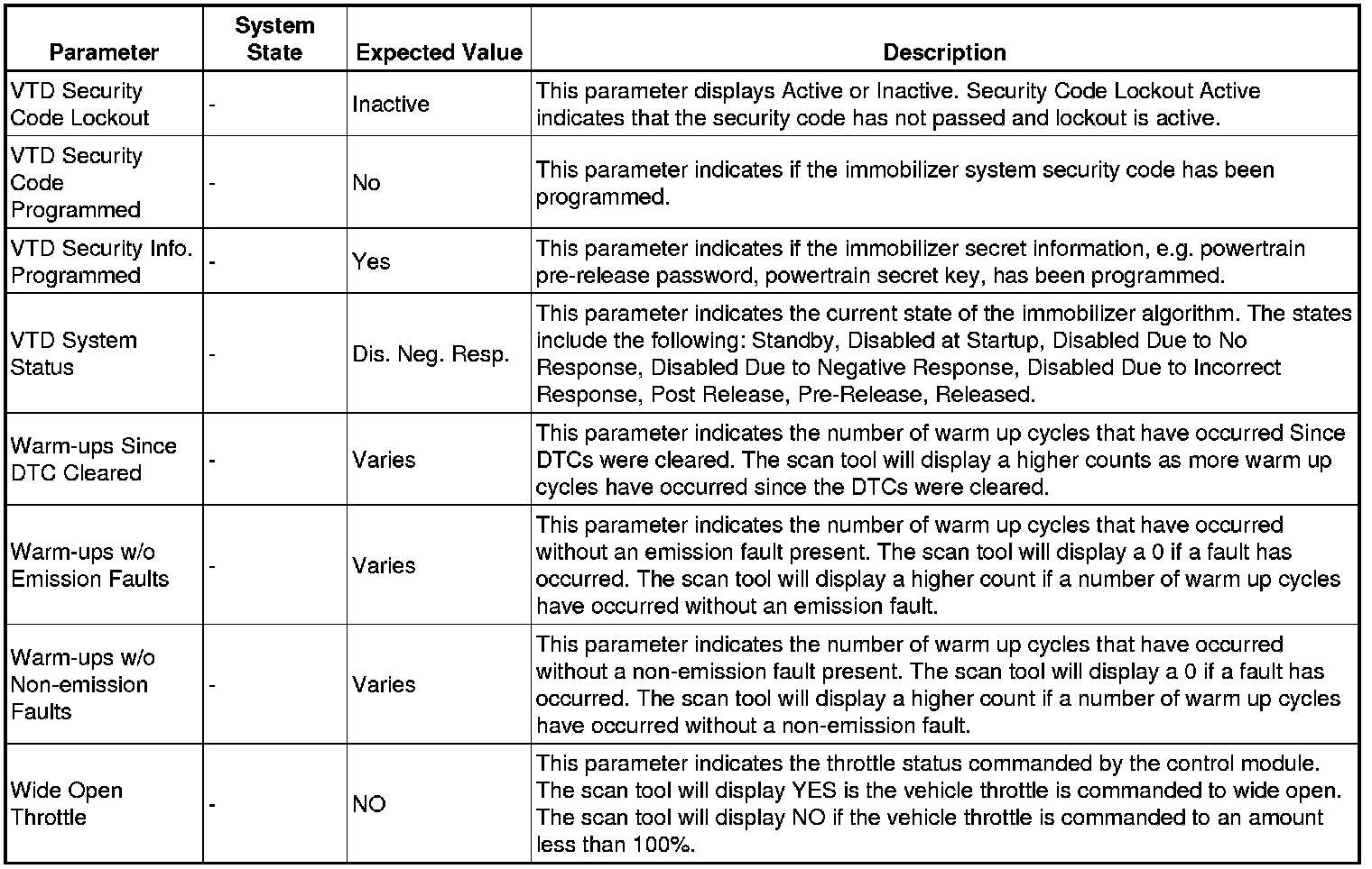 Only the parameters listed below are referenced in this service manual for use in diagnosis.