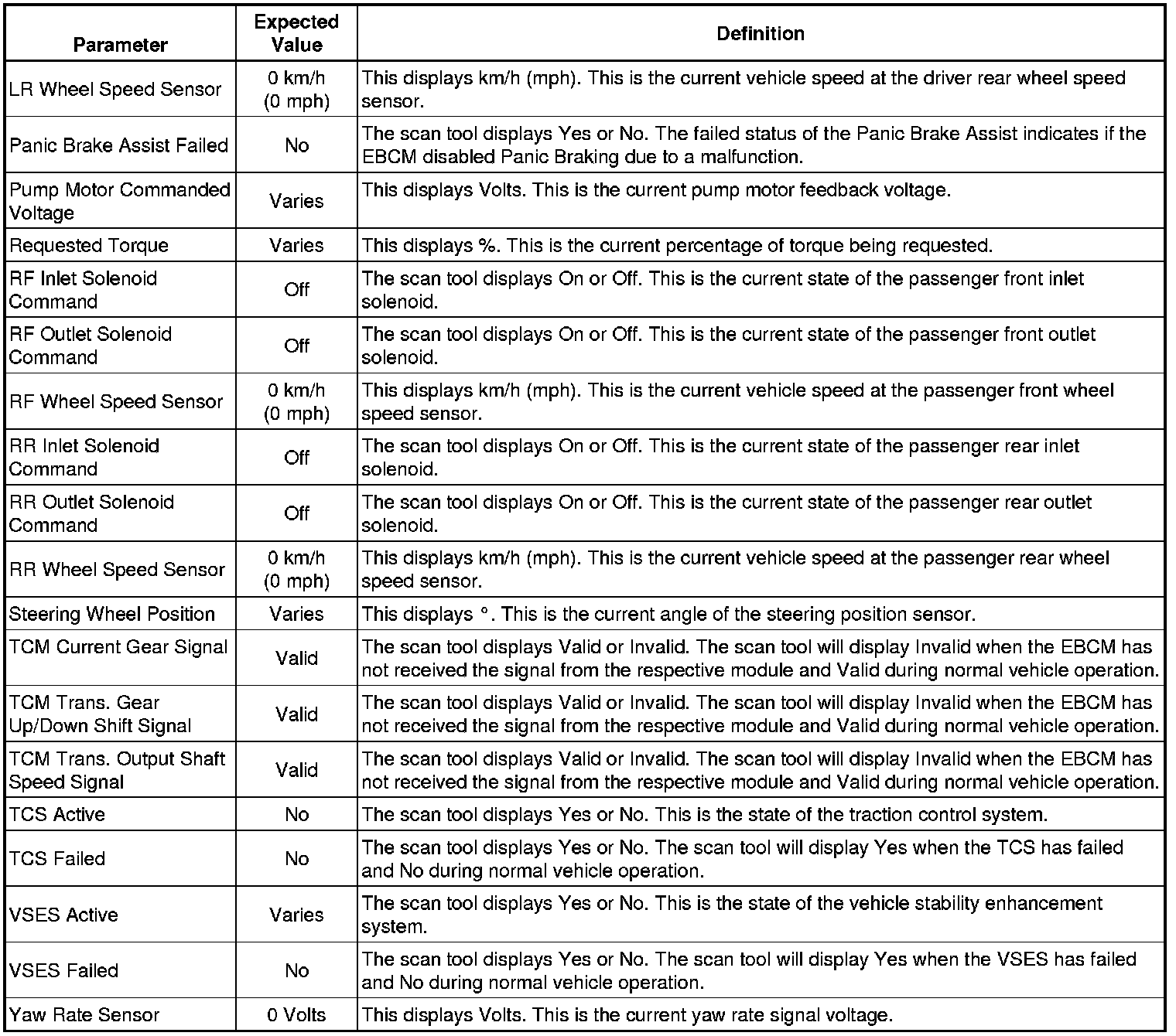 Electronic Brake Control Module Scan Tool Information