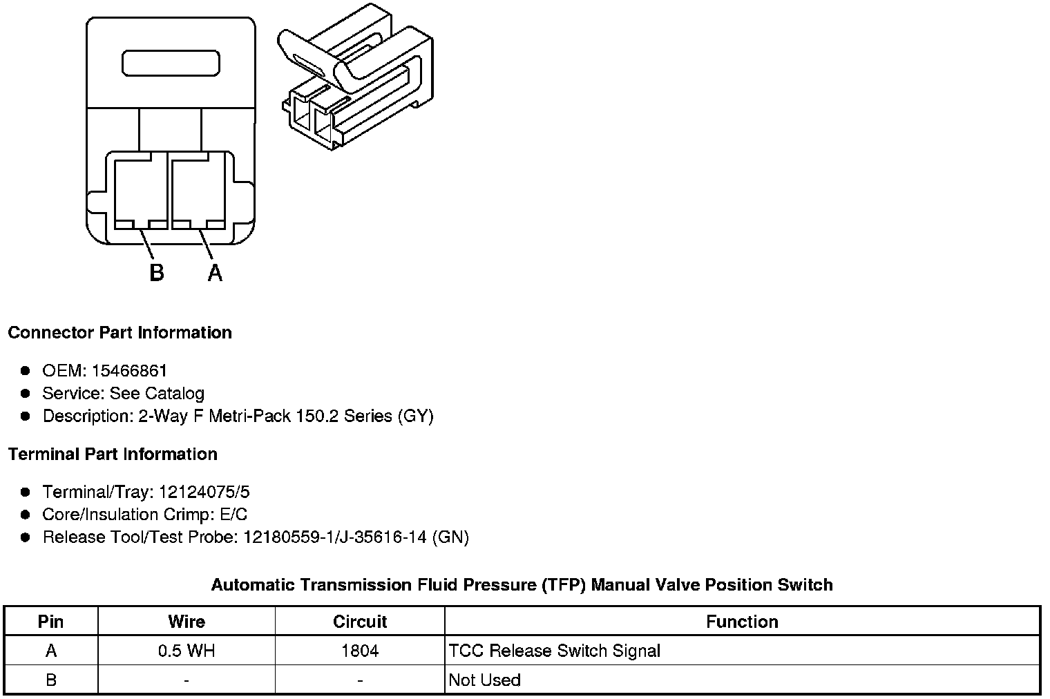 Automatic Transmission Fluid Pressure (TFP) Manual Valve Position Switch