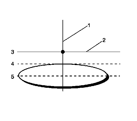 3. Adjust the fog lamp up or down until the top edge of the high intensity zone on the screen is 102 mm (4 in) below the horizontal centerline (2), within the range of 0 mm (0 in) (3) to 203 mm (8 in) (5), below the horizontal centerline, on the target screen.