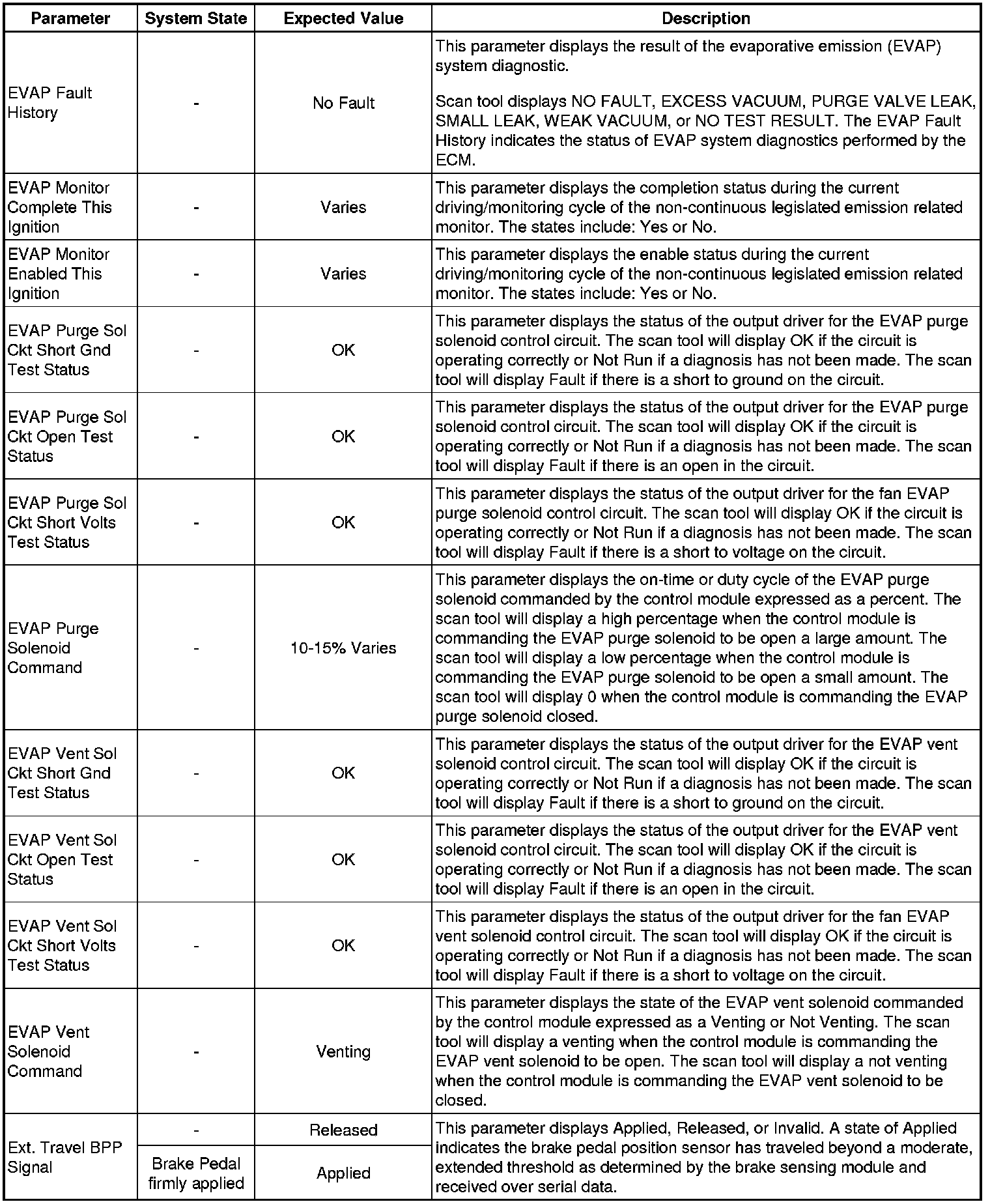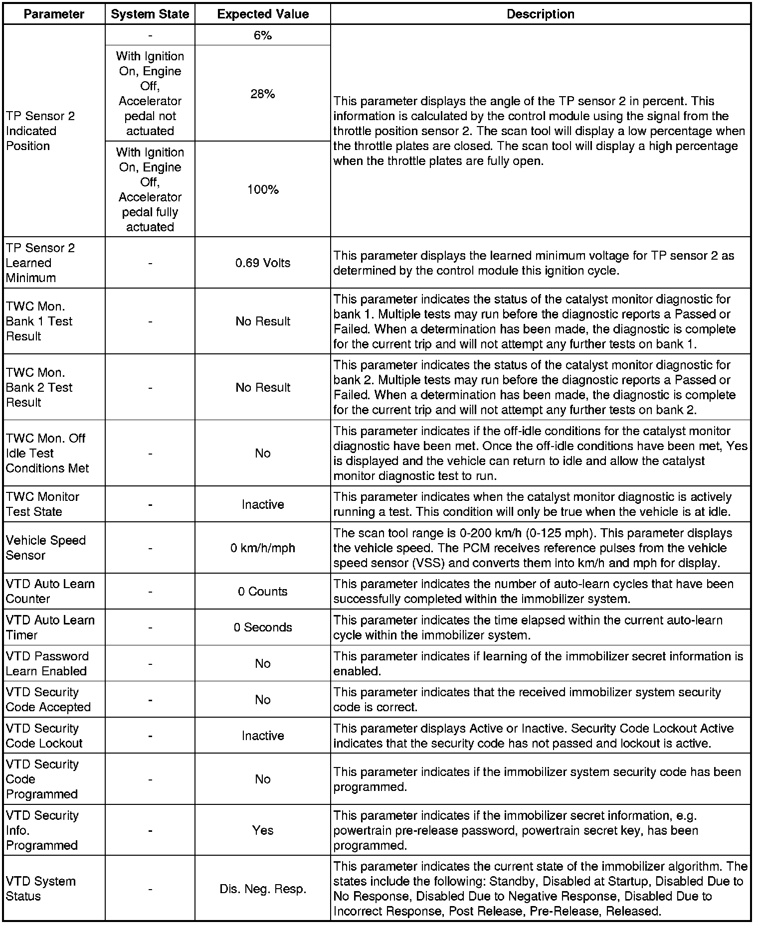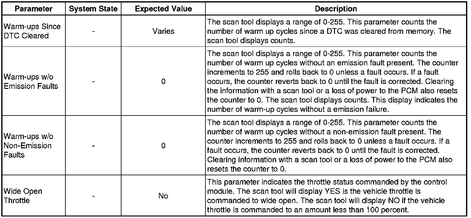 Only the parameters listed below are referenced in this service manual for use in diagnosis. If all values are within the typical range described below, refer to Symptoms - Engine Controls (- Symptoms - Engine Controls) for diagnosis.