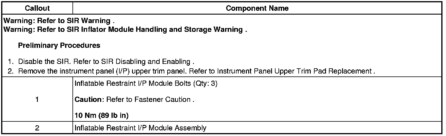 Instrument Panel Inflatable Restraint Module Replacement