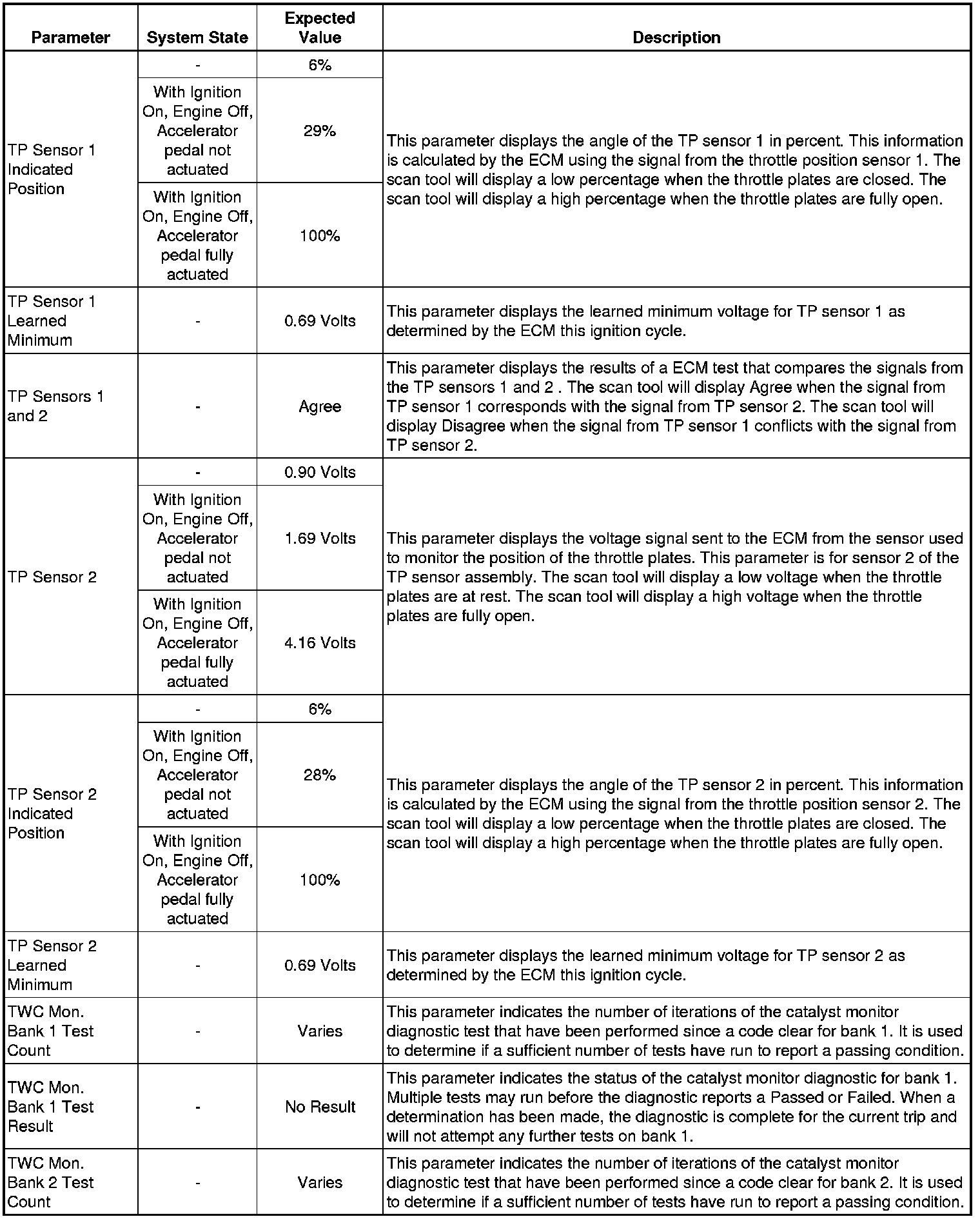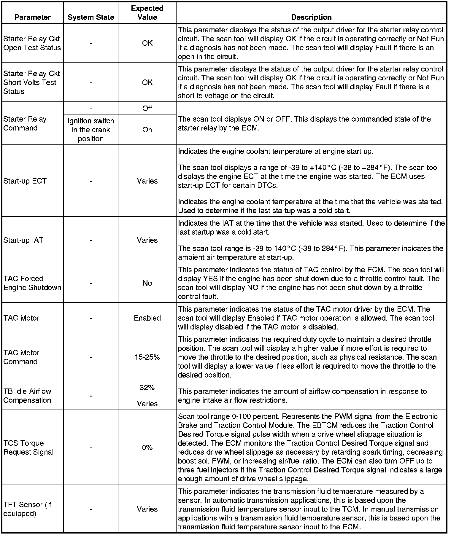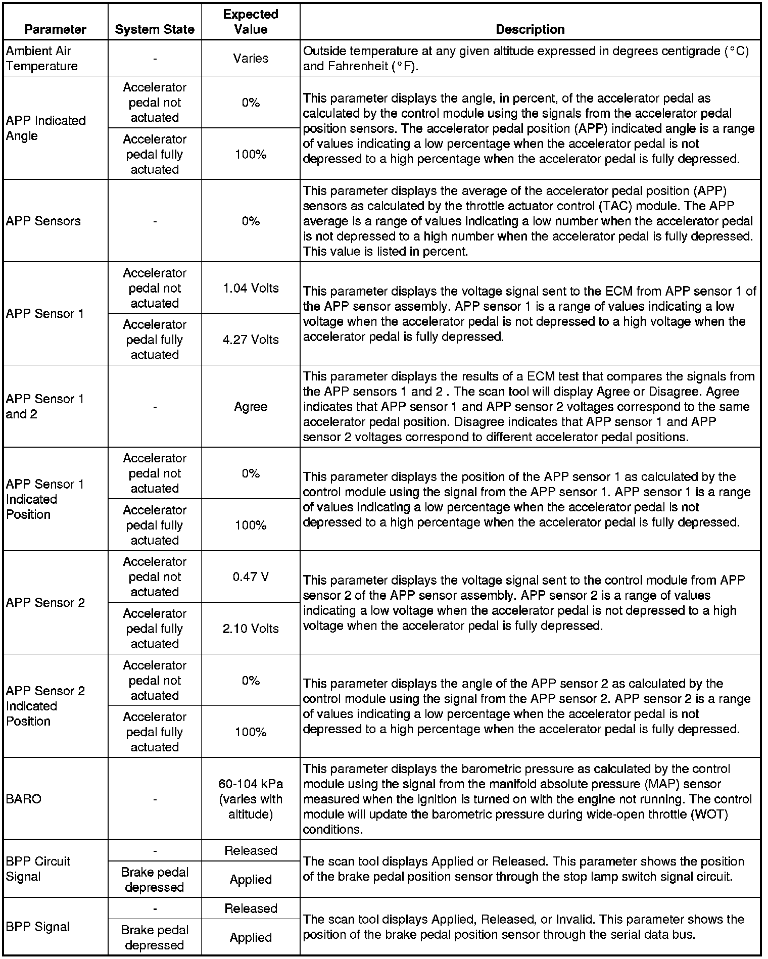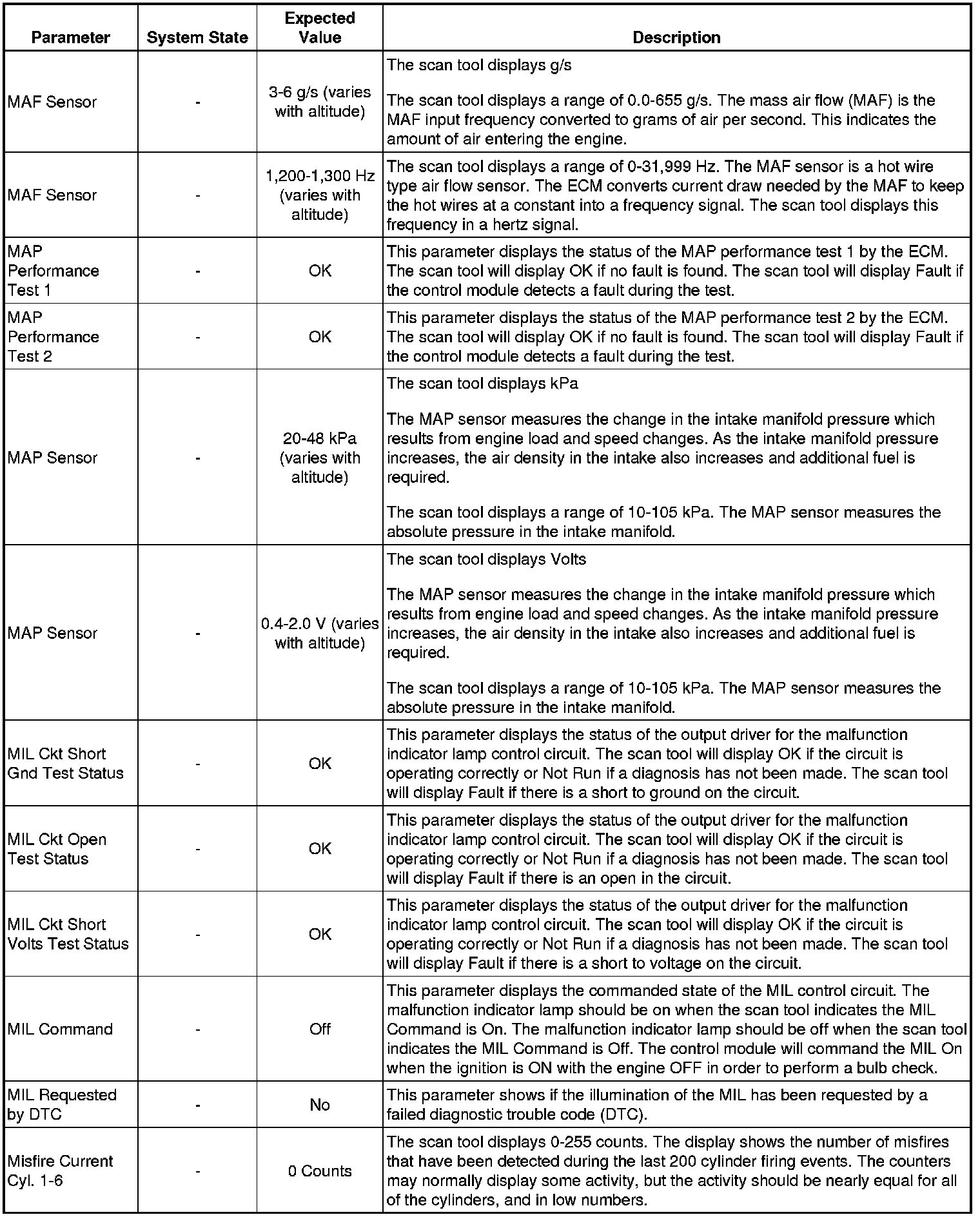 Only the parameters listed below are referenced in this service manual for use in diagnosis. If all values are within the typical range described below, refer to Symptoms - Engine Controls (- Symptoms - Engine Controls) for diagnosis.