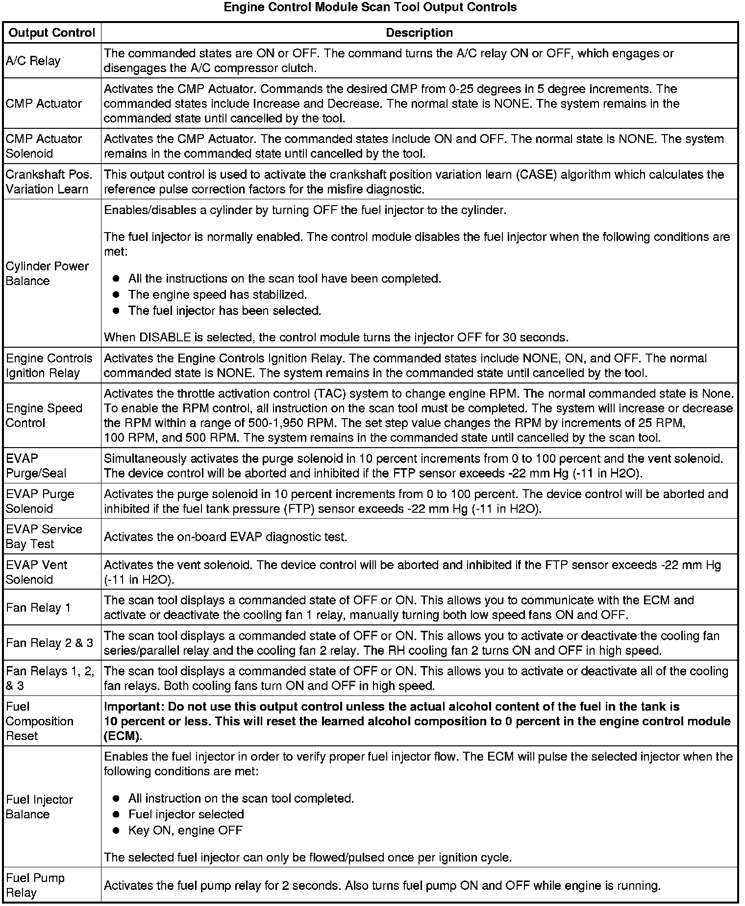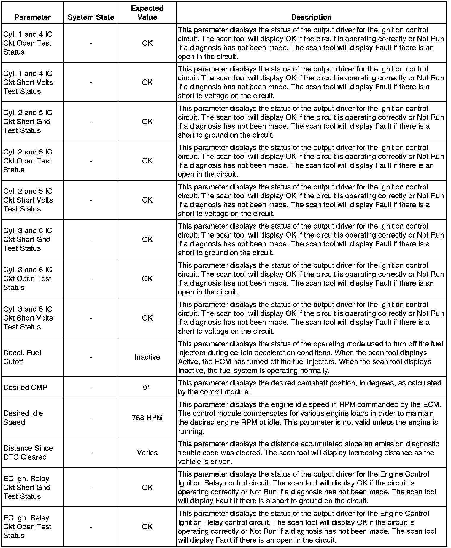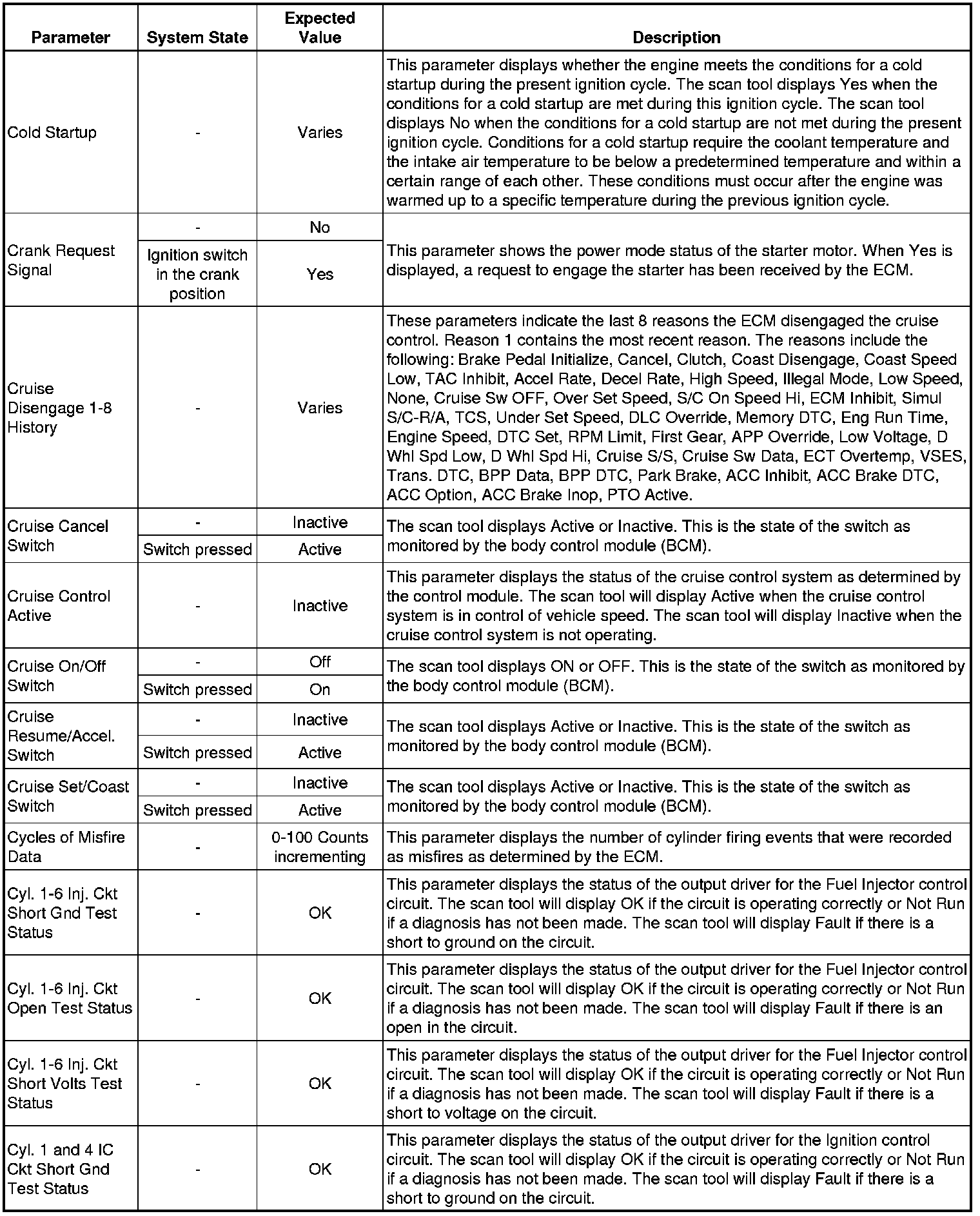 The Engine Control Module Scan Tool Data List contains all engine-related parameters that are available on the scan tool. The list is arranged in alphabetical order. A given parameter may appear in any one of the data lists, and in some cases may appear more than once, or in more than one data list in order to group certain related parameters together.