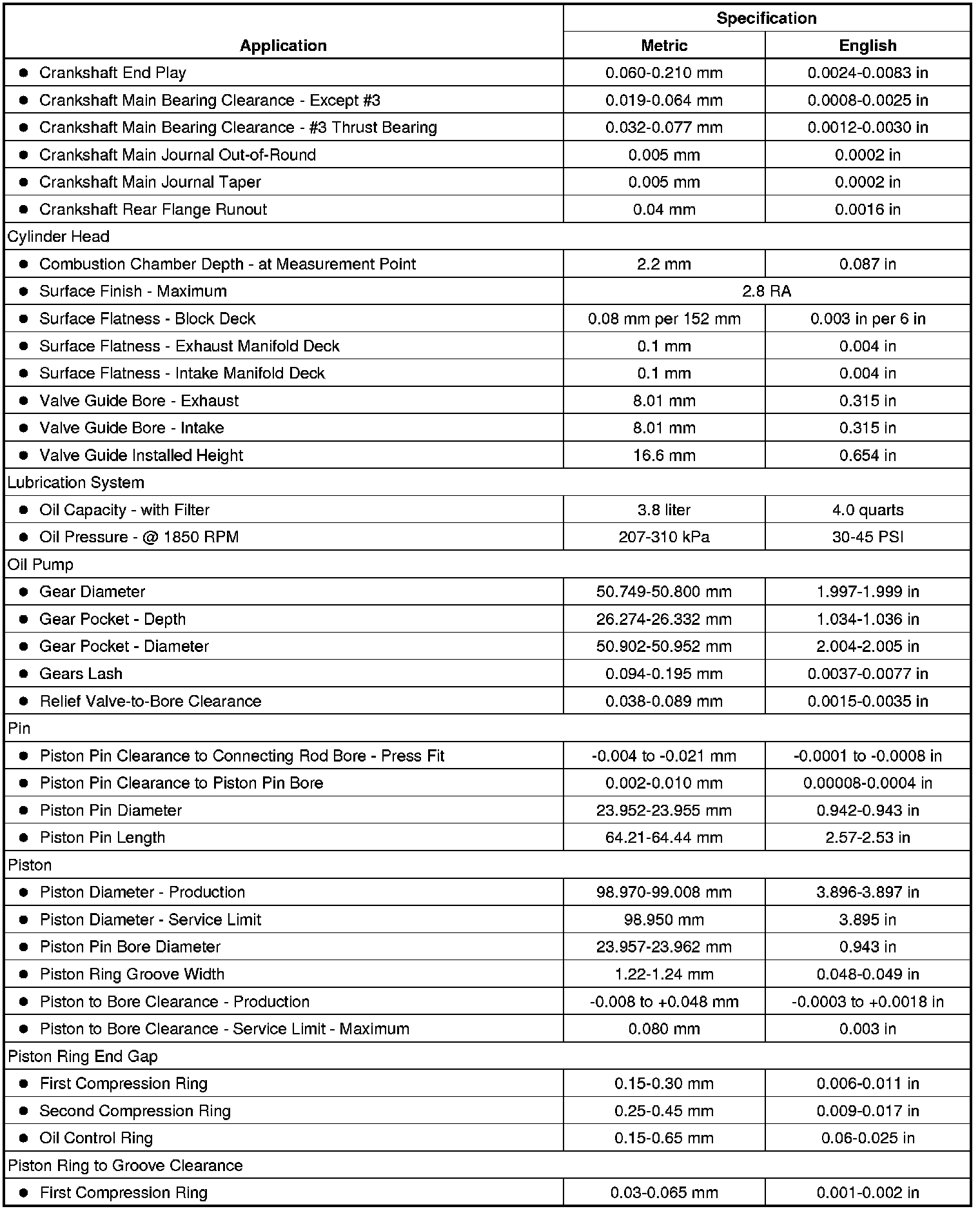 Engine Mechanical Specifications