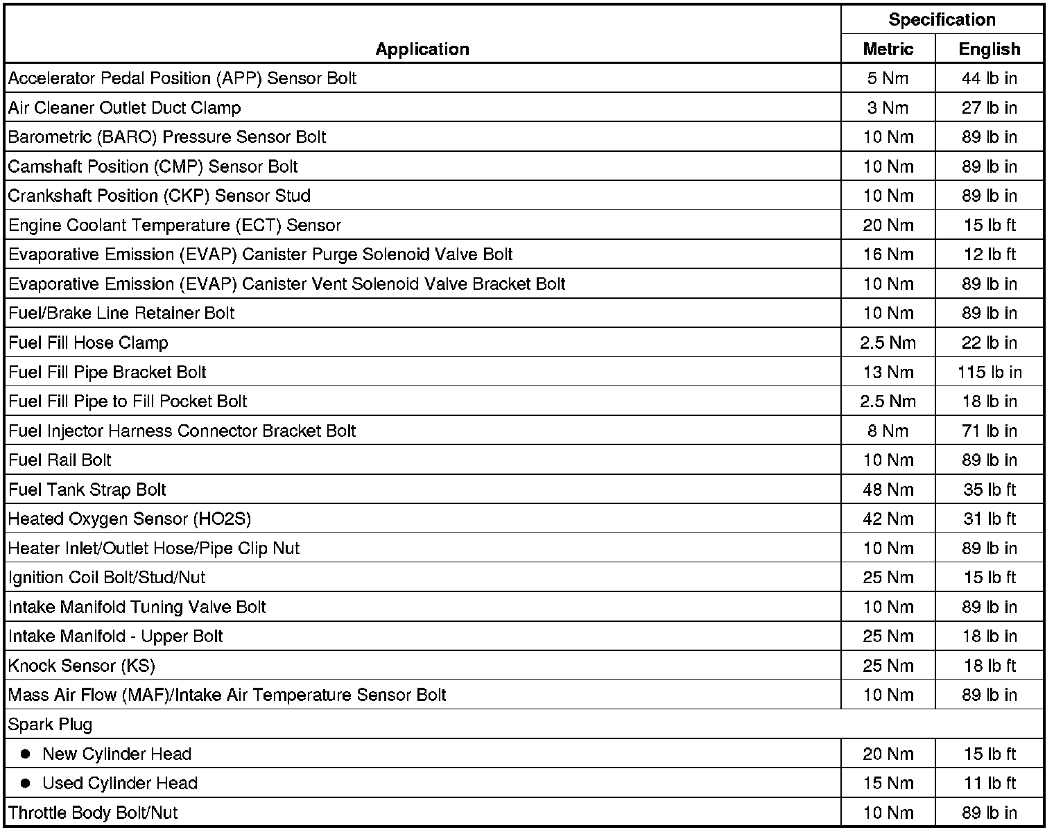 Fastener Tightening Specifications