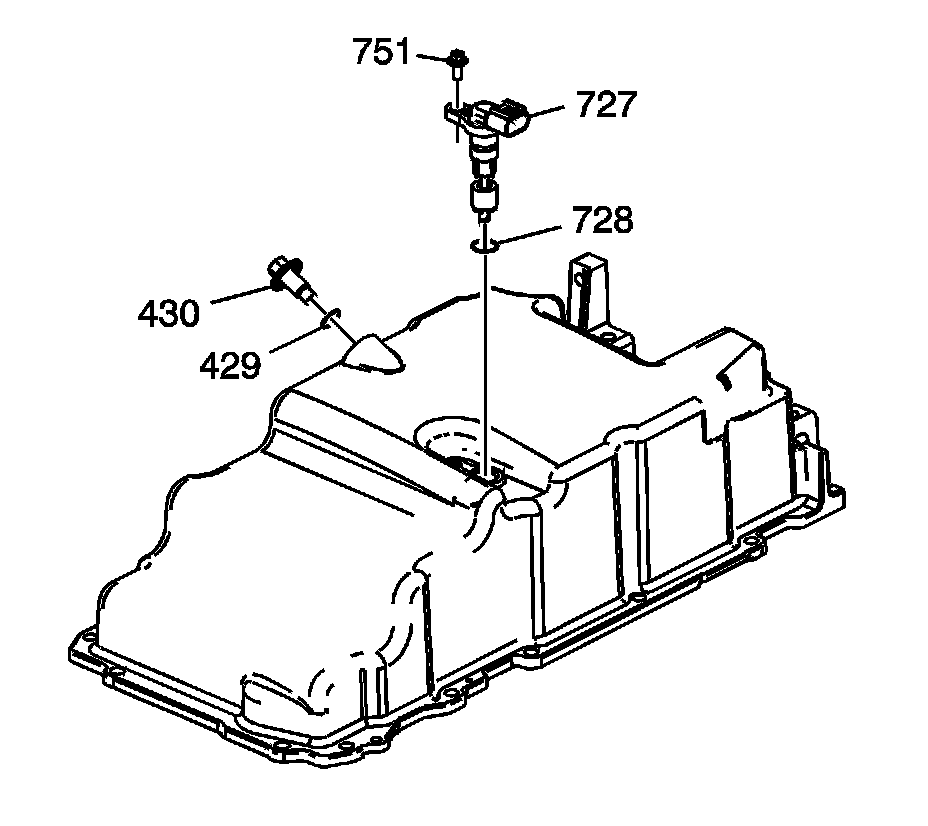 5. Remove the oil level sensor (727) and O-ring (728) from the oil pan.