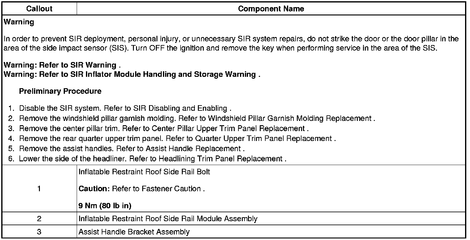 Inflatable Restraint Roof Side Rail Module Replacement