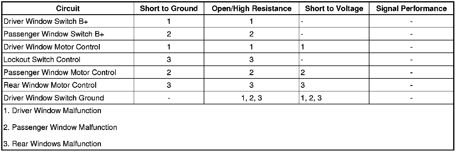 4. If all circuits test normal, test or replace the driver window switch.