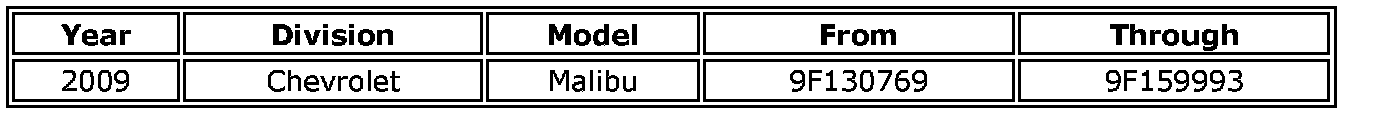 Involved are certain 2009 model year Chevrolet Malibu hybrid vehicles built within the VIN breakpoints shown above.